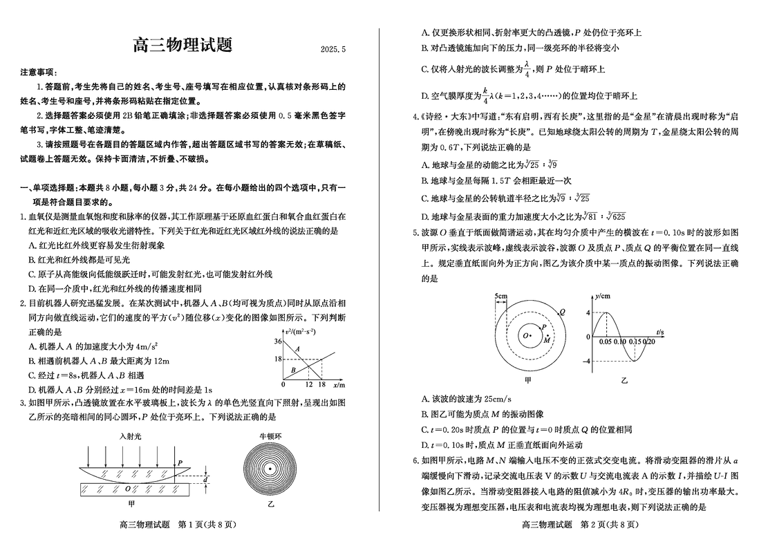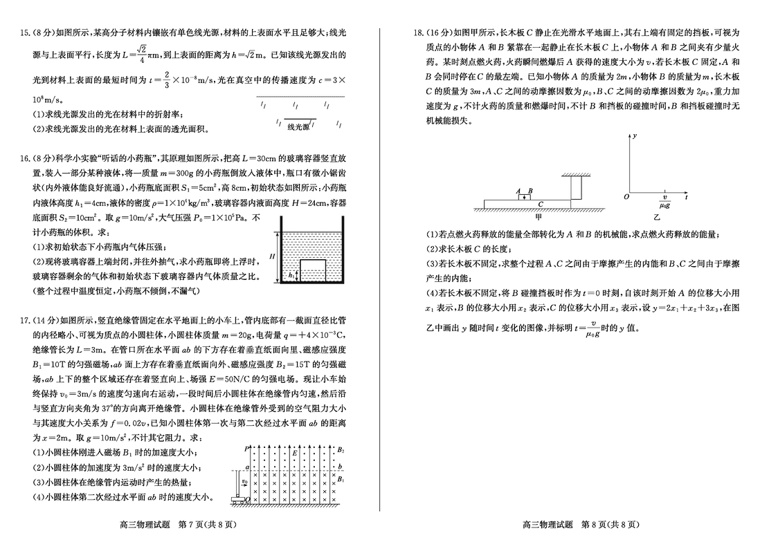 德州三模2025届高三第三次适应性检测物理试题及答案 时间:2025-05-30 山东 理综试题 德州三模2025届高三第三次适应性检测物理考试已于近日开考,为方便考生考后及时查看考试情况,查漏补缺、弥补不足,本文整理了试题答案解析相关信息! 汇总:德州三模2025届高三第三次适应性检测试题及答案汇总 物理试题及答案解析
