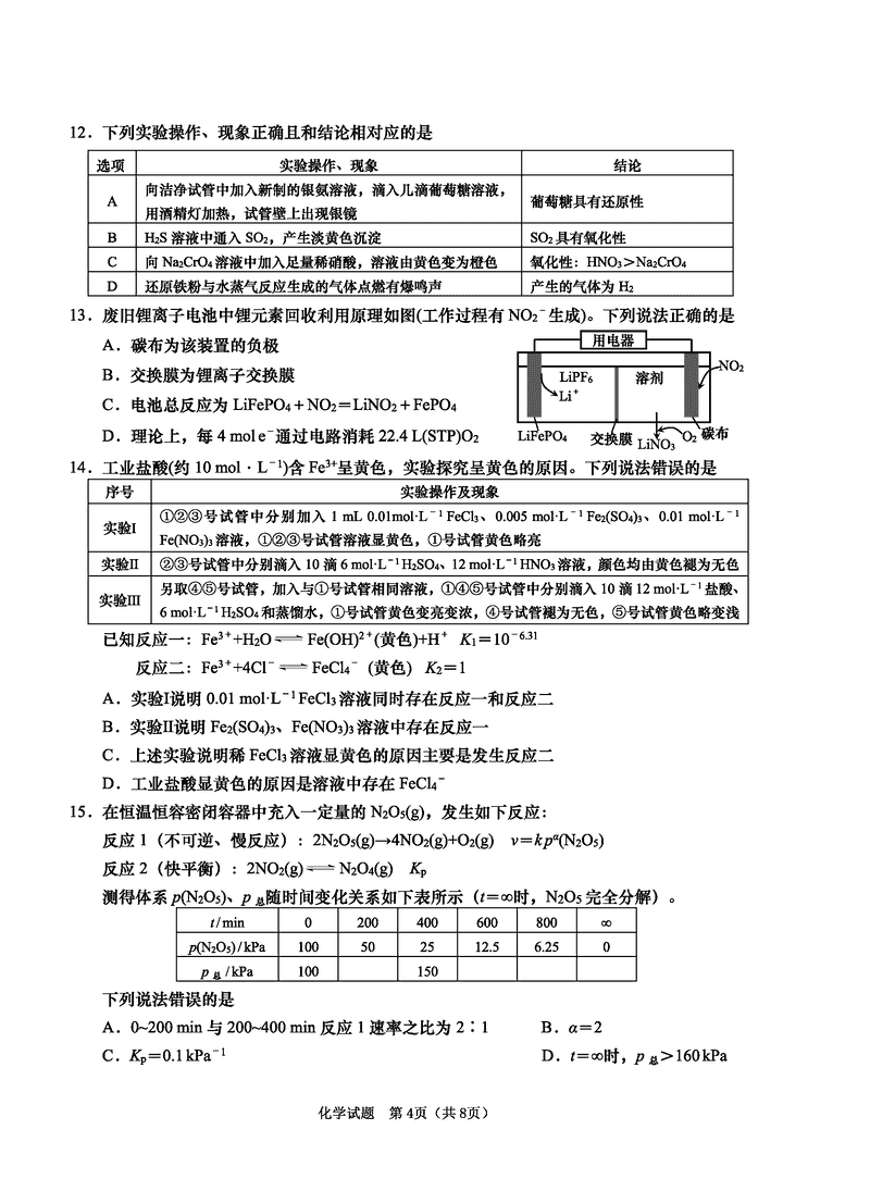 化学试题及答案解析