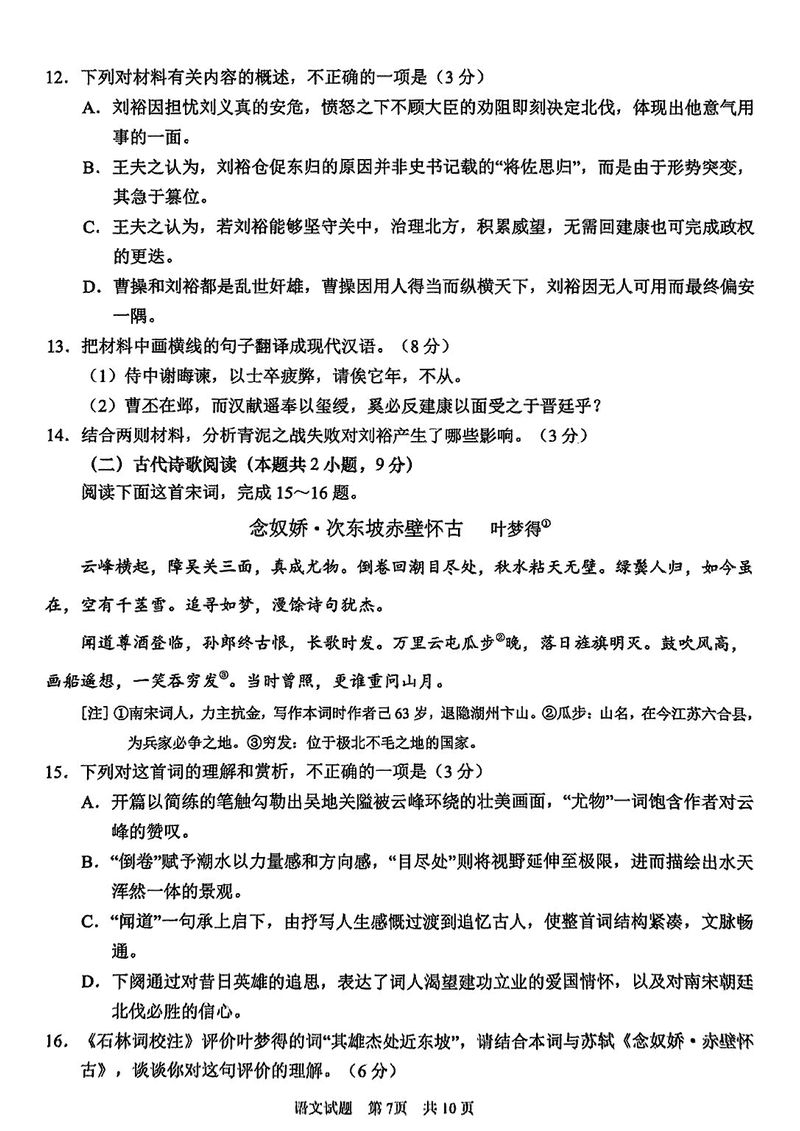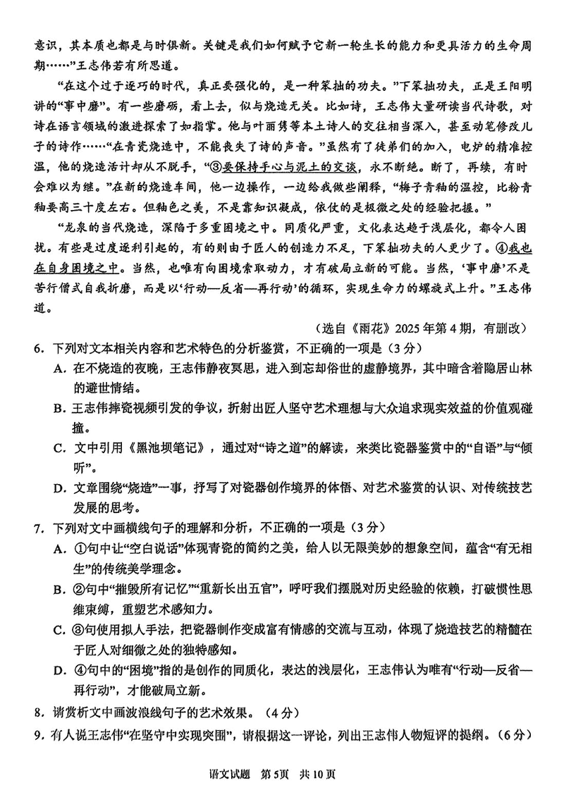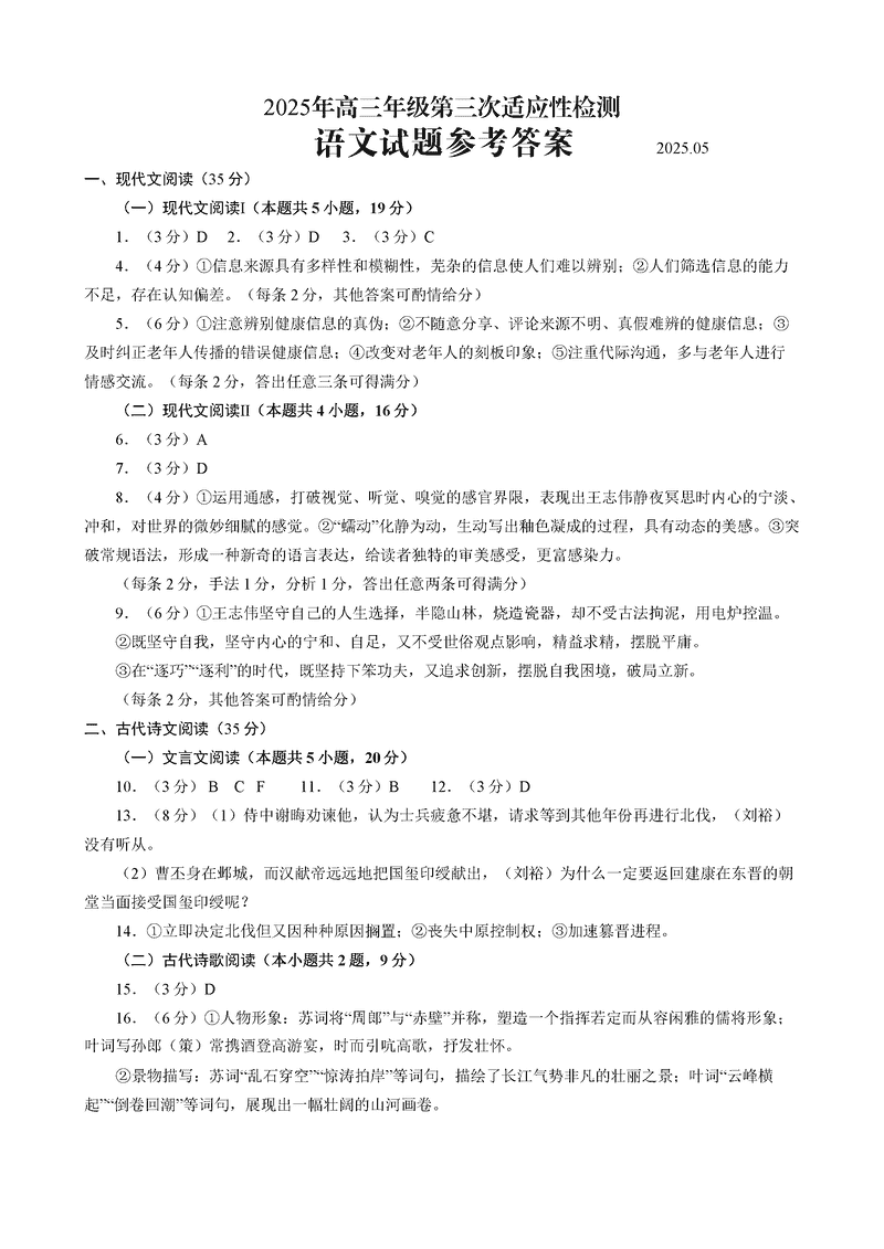 青岛三模2025年高三第三次适应性检测语文试题及答案