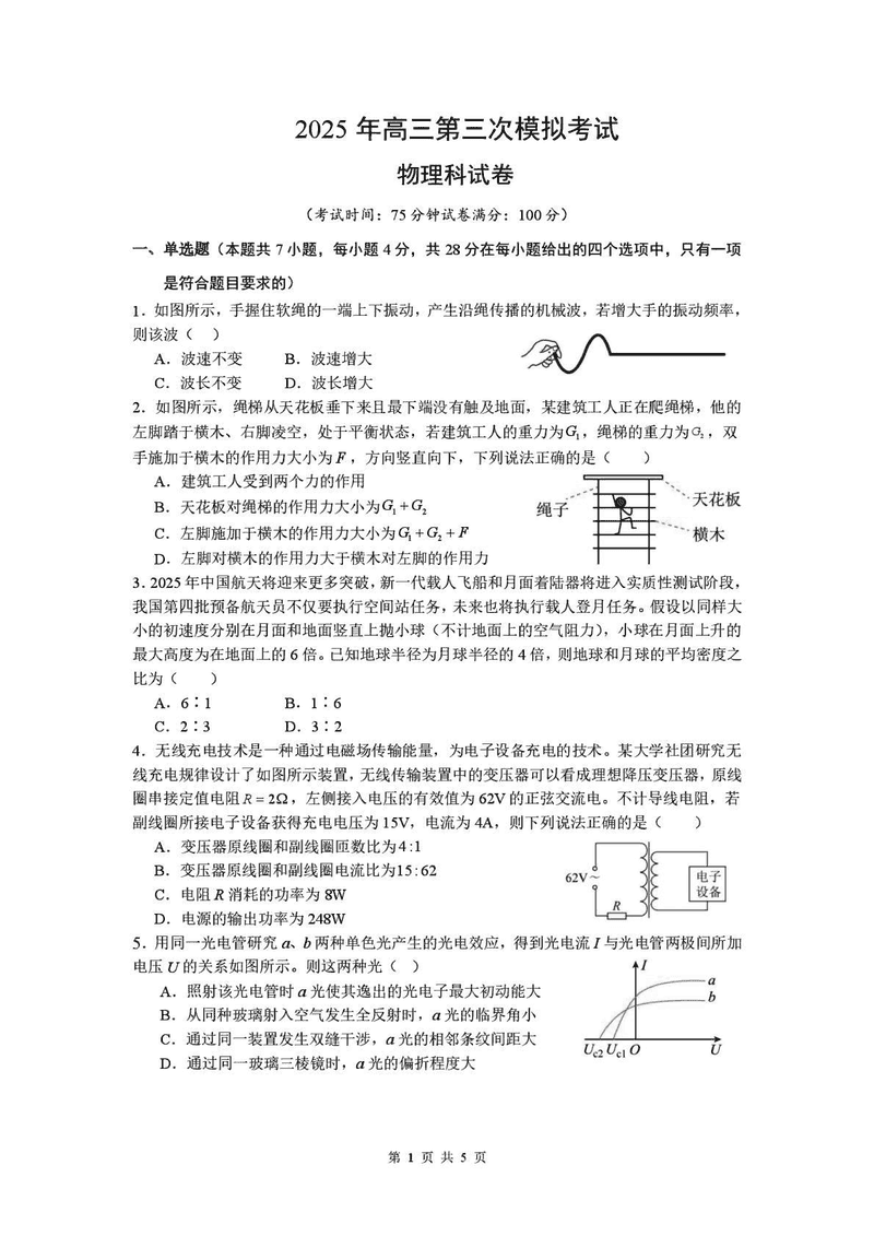 广东汕头三模2025年高三第三次模拟物理考试已于近日开考,为方便考生考后及时查看考试情况,查漏补缺、弥补不足,本文整理了试题答案解析相关信息!