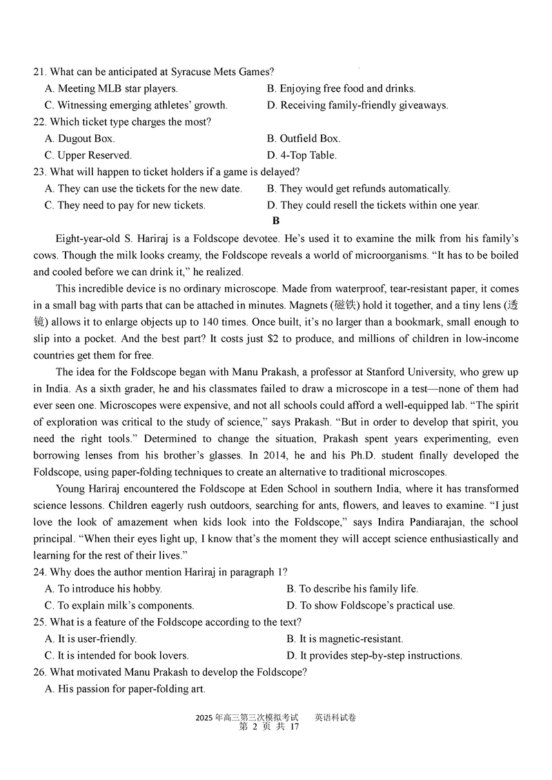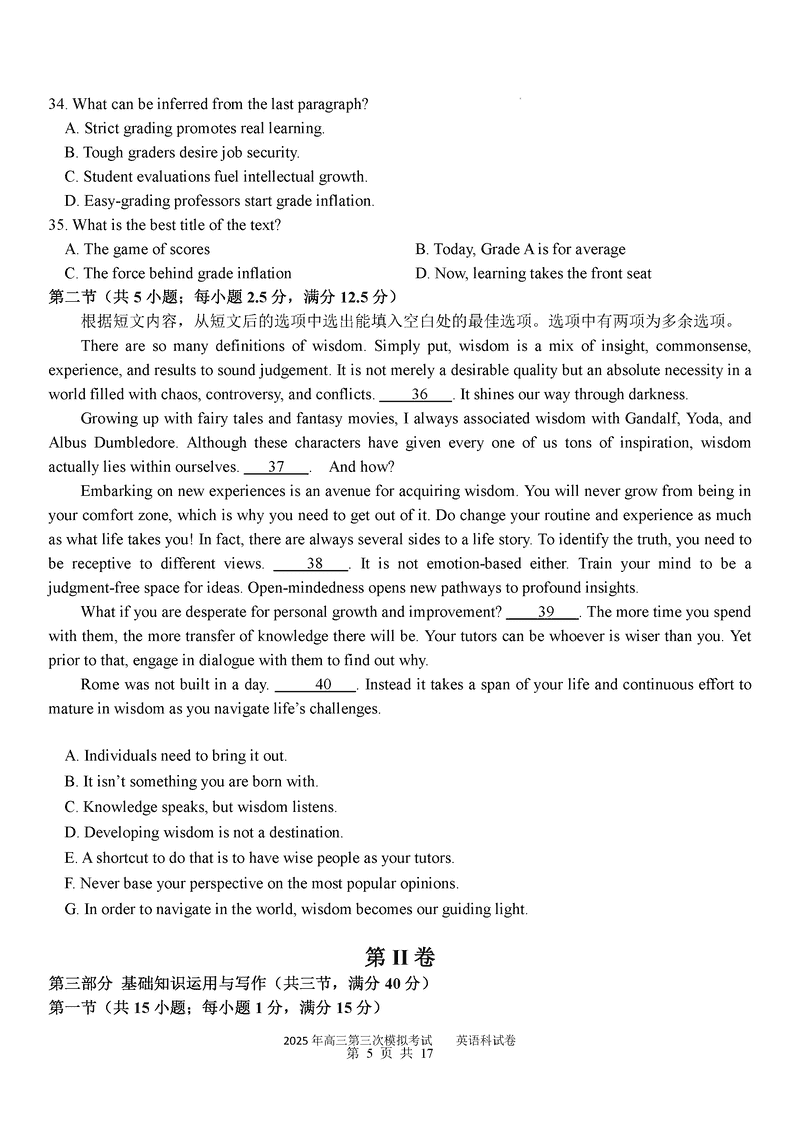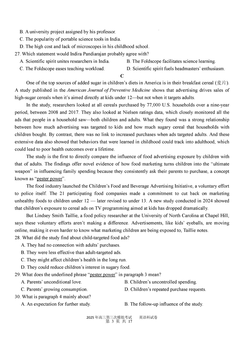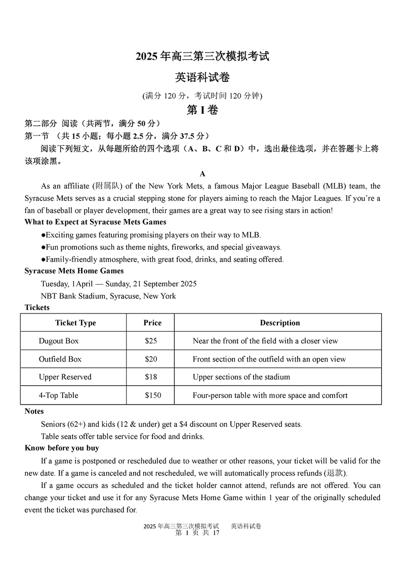 广东汕头三模2025年高三第三次模拟英语考试已于近日开考,为方便考生考后及时查看考试情况,查漏补缺、弥补不足,本文整理了试题答案解析相关信息!