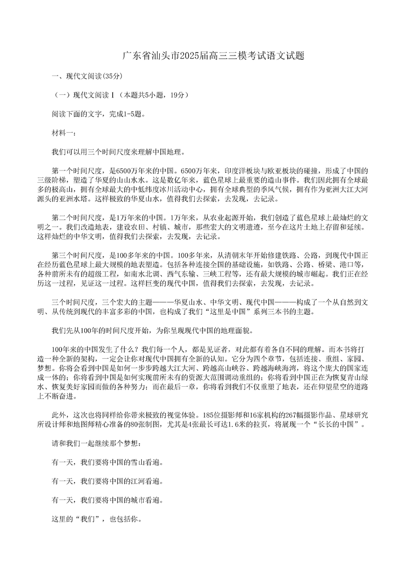 广东汕头三模2025年高三第三次模拟语文考试已于近日开考,为方便考生考后及时查看考试情况,查漏补缺、弥补不足,本文整理了试题答案解析相关信息!