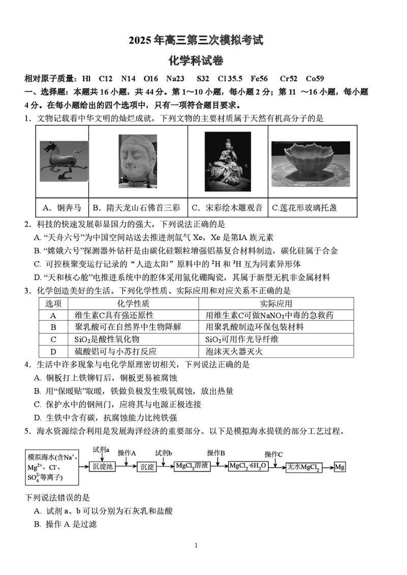 广东汕头三模2025年高三第三次模拟化学考试已于近日开考,为方便考生考后及时查看考试情况,查漏补缺、弥补不足,本文整理了试题答案解析相关信息!