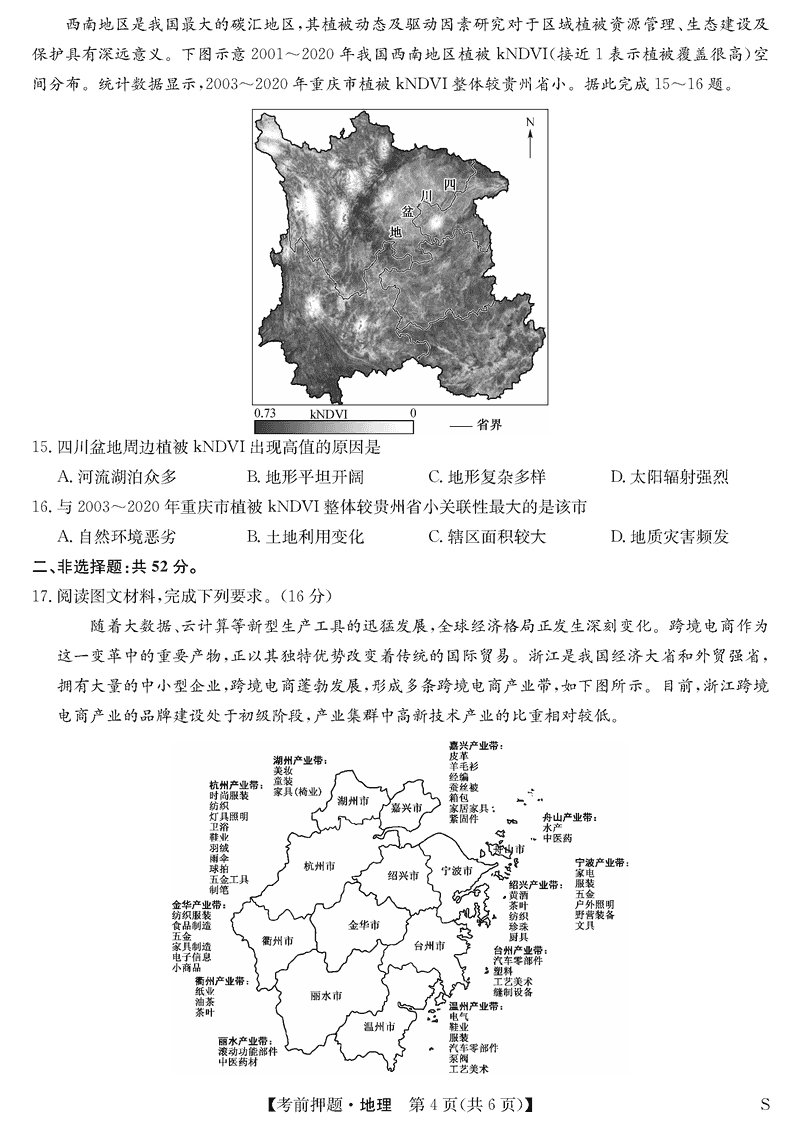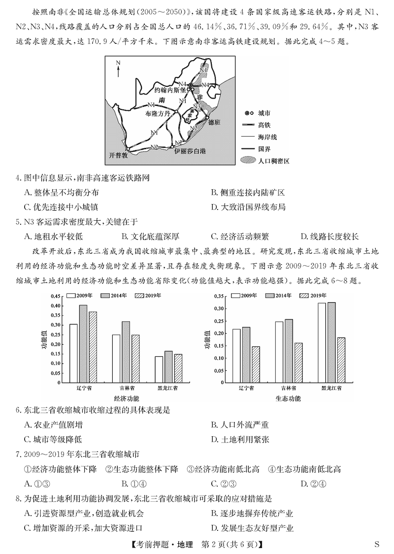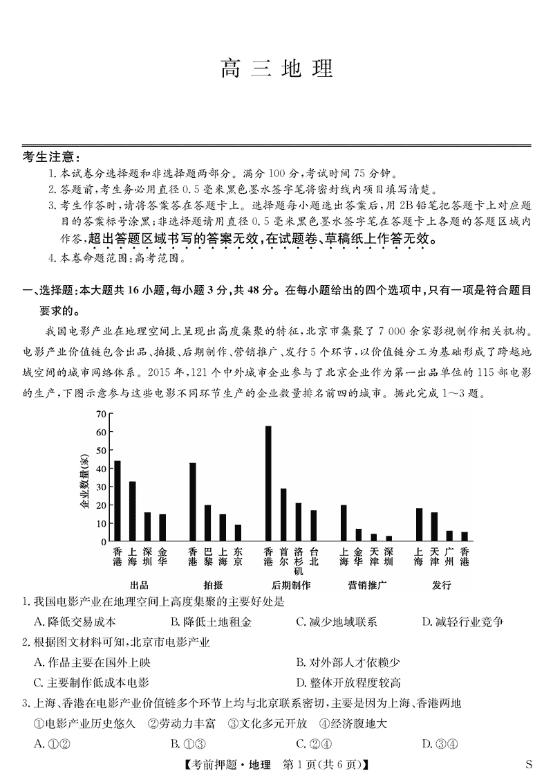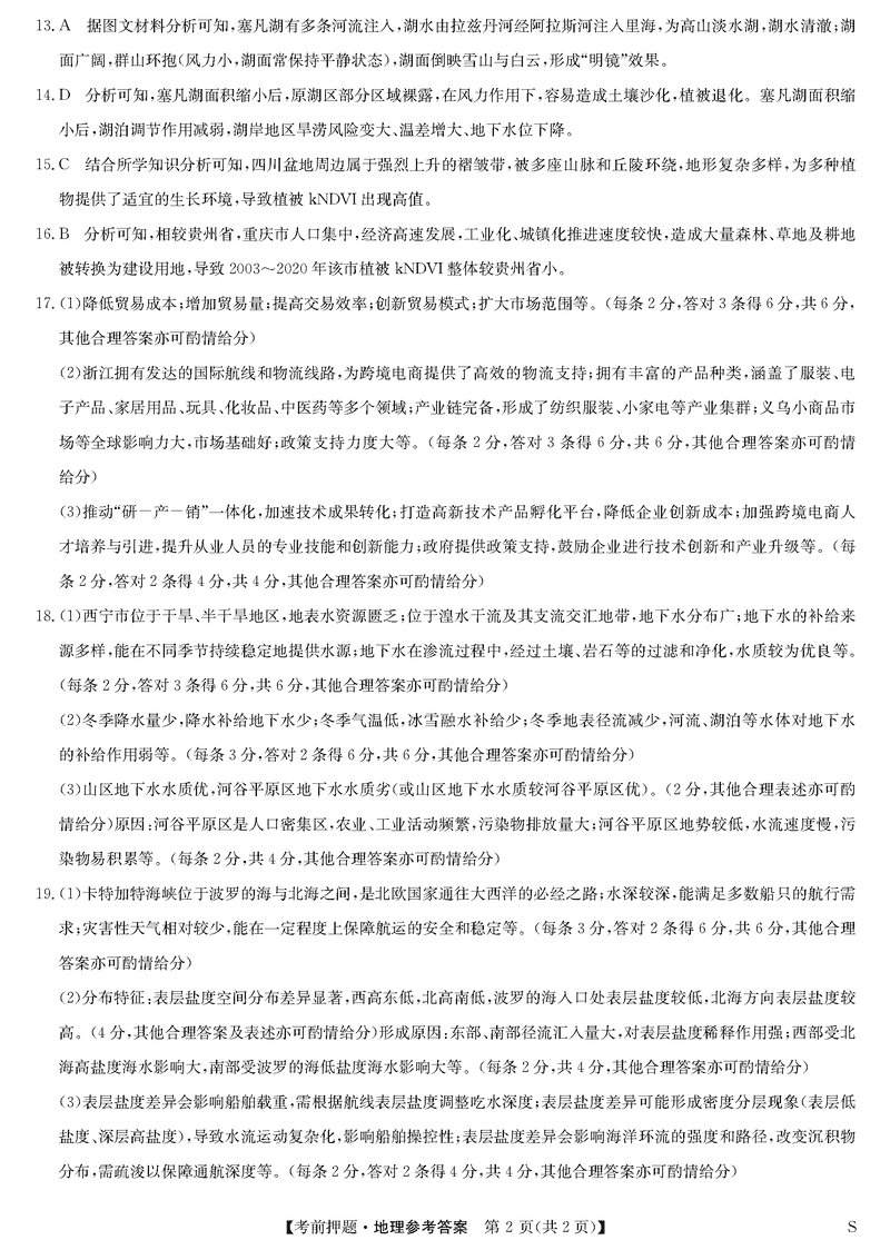 安徽九师联盟2025届高三5月考前押题地理试题及答案
