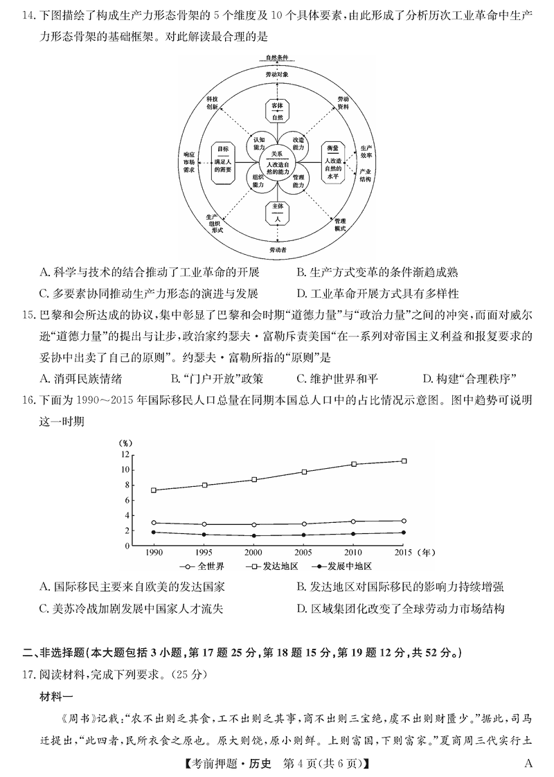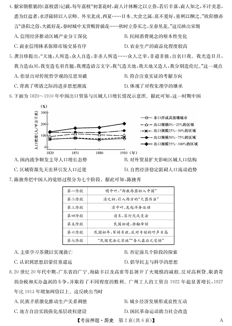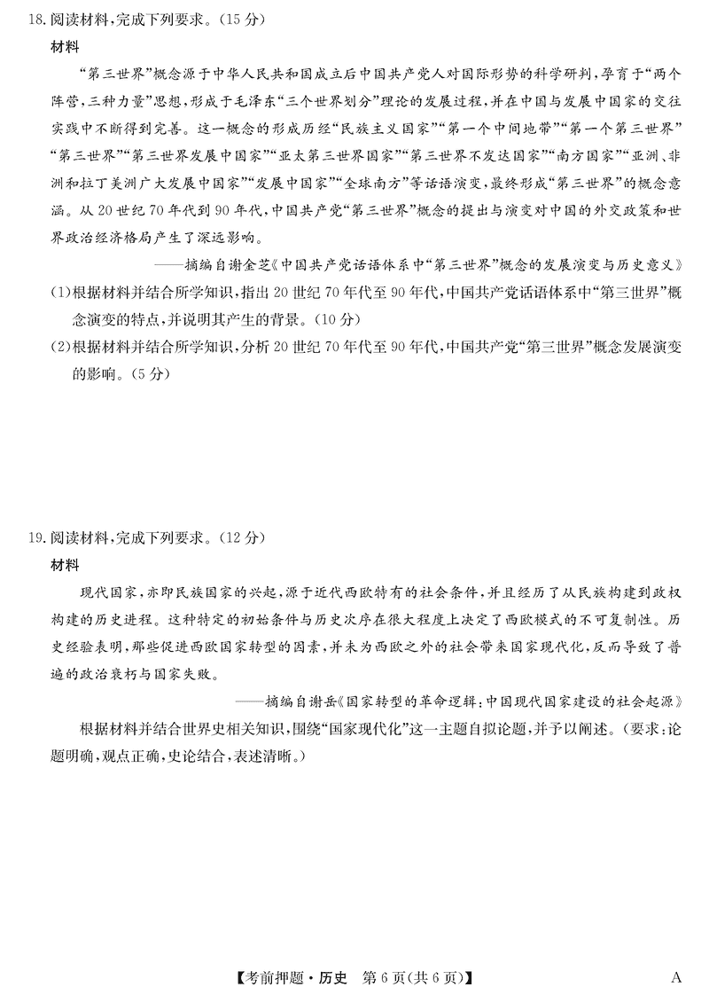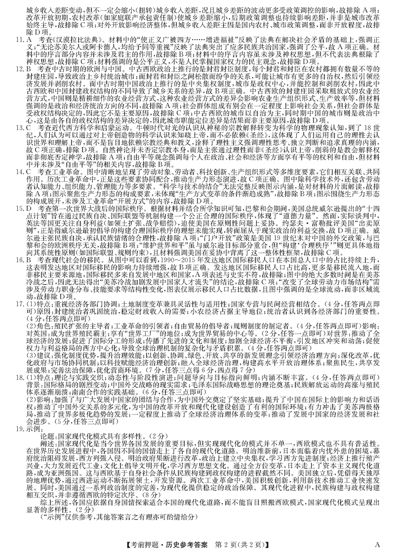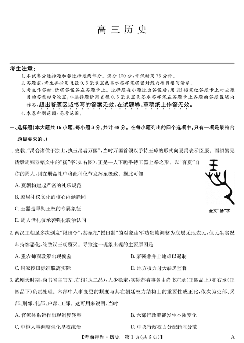 安徽九师联盟2025届高三5月考前押题历史试题及答案