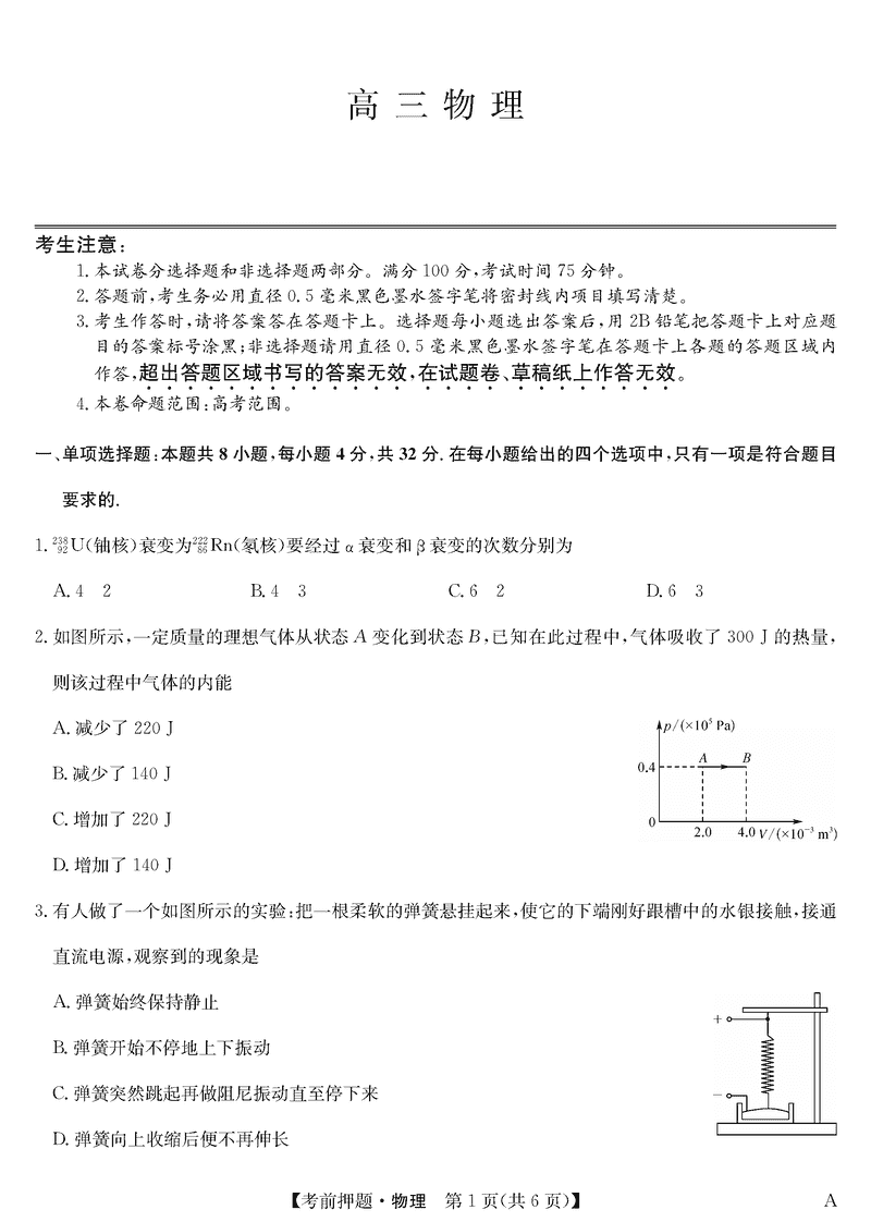 安徽九师联盟2025届高三5月考前押题物理考试已于近日开考,为方便考生考后及时查看考试情况,查漏补缺、弥补不足,本文整理了试题答案解析相关信息!