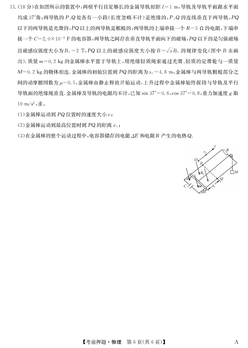 安徽九师联盟2025届高三5月考前押题物理试题及答案