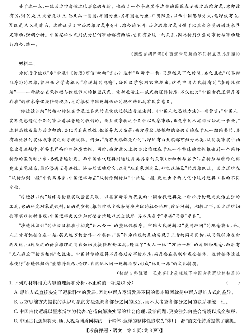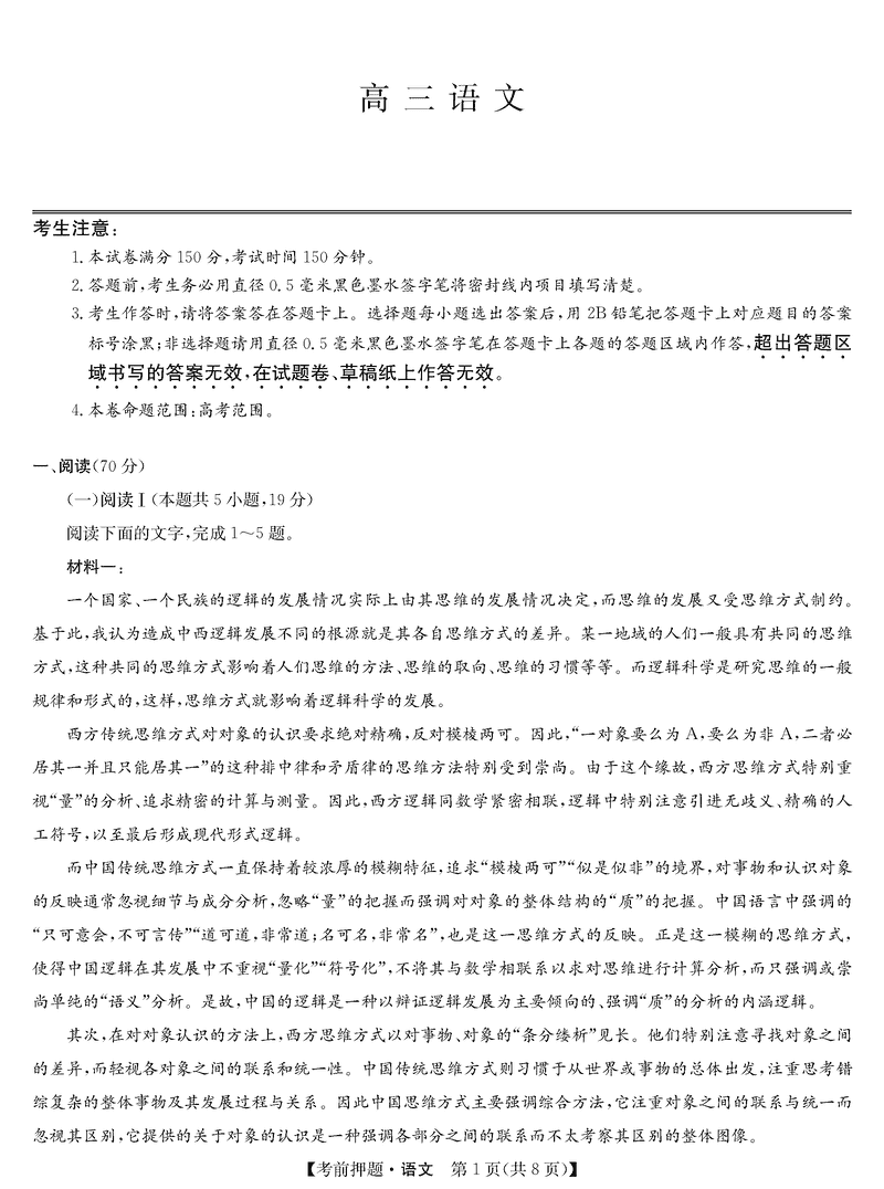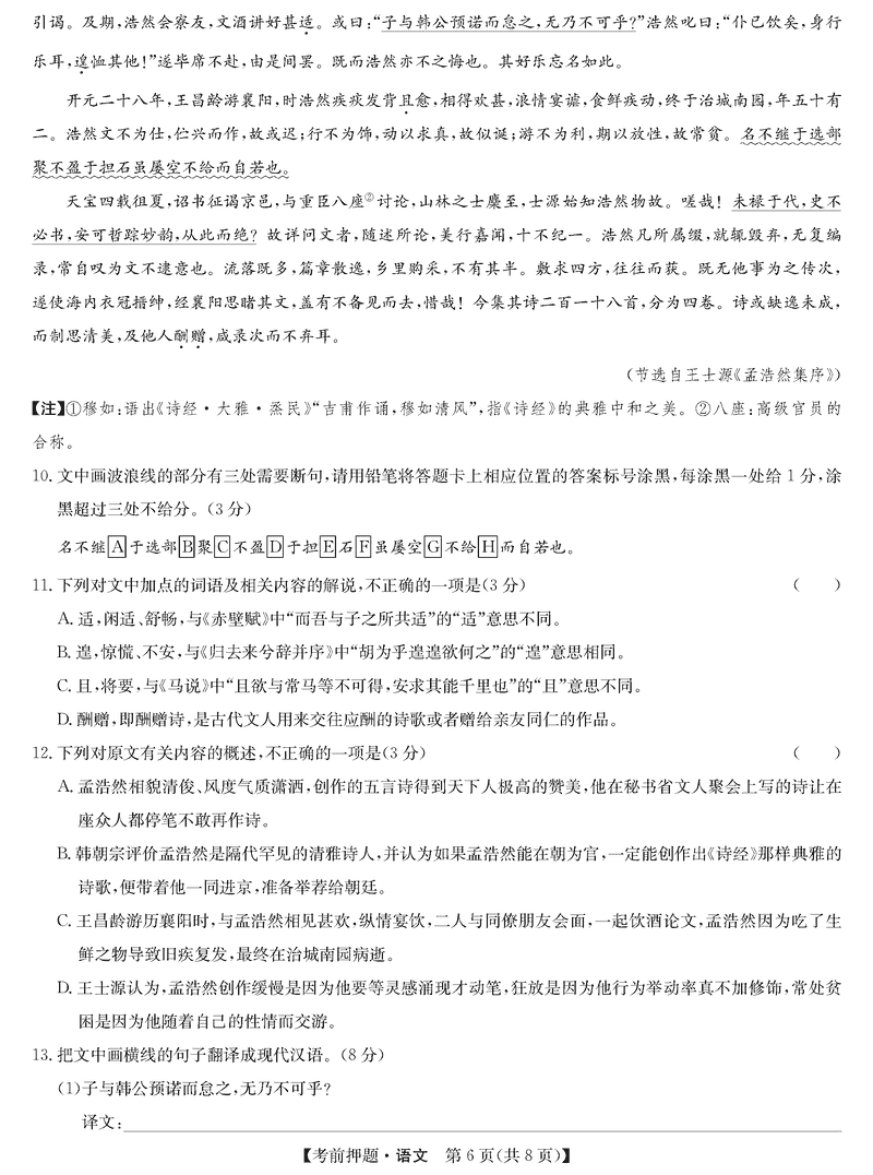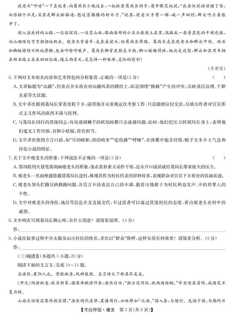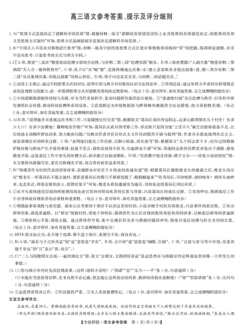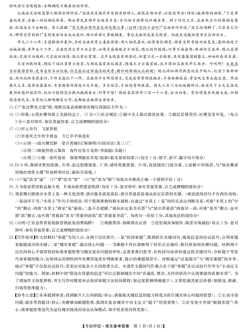 安徽九师联盟2025届高三5月考前押题语文试题及答案