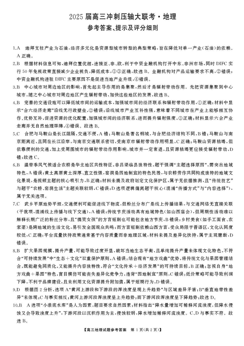 2025届湖南高三天壹冲刺压轴大联考地理试题及答案 时间:2025-05-30 湖南 文综试题 2025届湖南高三天壹冲刺压轴大联考地理考试已于近日开考,为方便考生考后及时查看考试情况,查漏补缺、弥补不足,本文整理了试题答案解析相关信息! 汇总:2025届湖南高三天壹冲刺压轴大联考试题及答案汇总 地理试题及答案解析