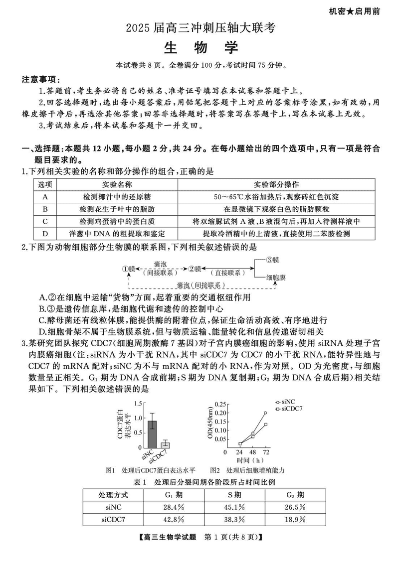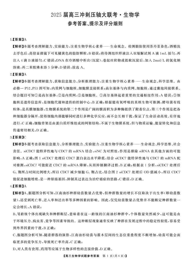 2025届湖南高三天壹冲刺压轴大联考生物试题及答案 时间:2025-05-30 湖南 理综试题 2025届湖南高三天壹冲刺压轴大联考生物考试已于近日开考,为方便考生考后及时查看考试情况,查漏补缺、弥补不足,本文整理了试题答案解析相关信息! 汇总:2025届湖南高三天壹冲刺压轴大联考试题及答案汇总 生物试题及答案解析