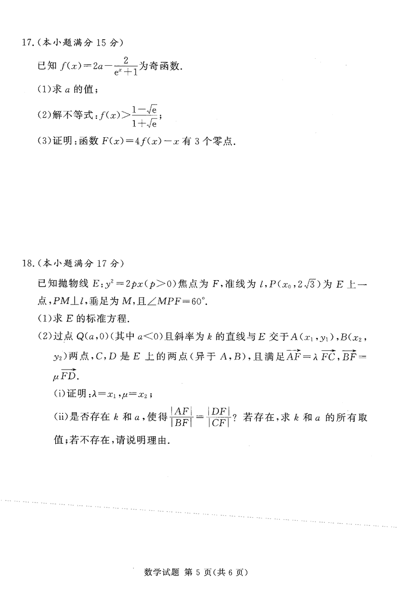 湘豫名校联考2024-2025学年高三第四次模拟数学试题及答案