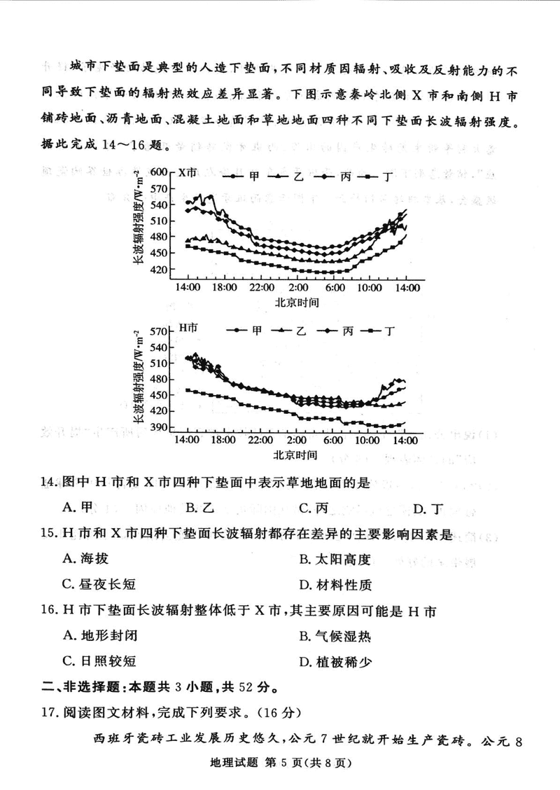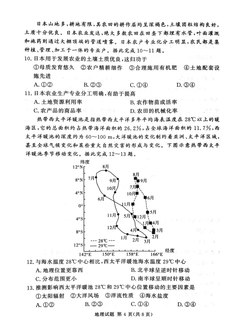 湘豫名校联考2024-2025学年高三第四次模拟地理试题及答案