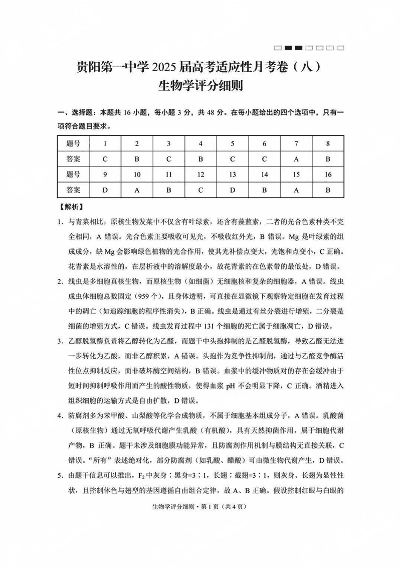 贵阳一中2025届高考适应性月考卷(八)生物考试已于近日开考,为方便考生考后及时查看考试情况,查漏补缺、弥补不足,本文整理了试题答案解析相关信息!