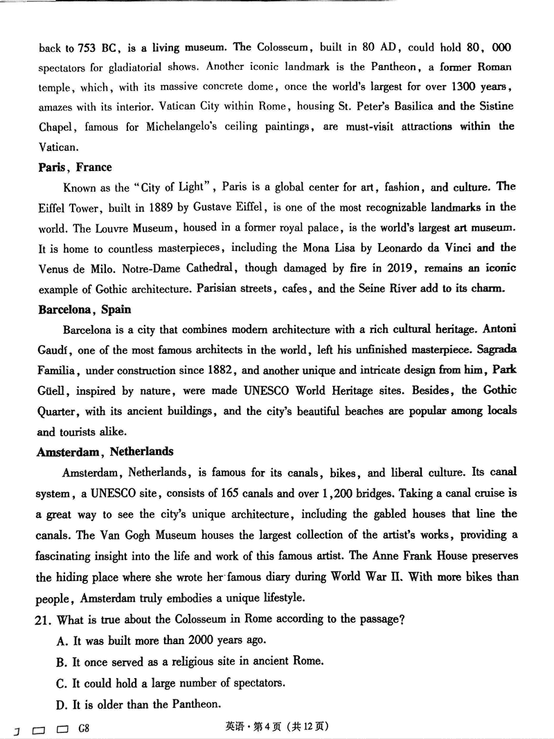 贵阳一中2025届高考适应性月考卷(八)英语考试已于近日开考,为方便考生考后及时查看考试情况,查漏补缺、弥补不足,本文整理了试题答案解析相关信息!