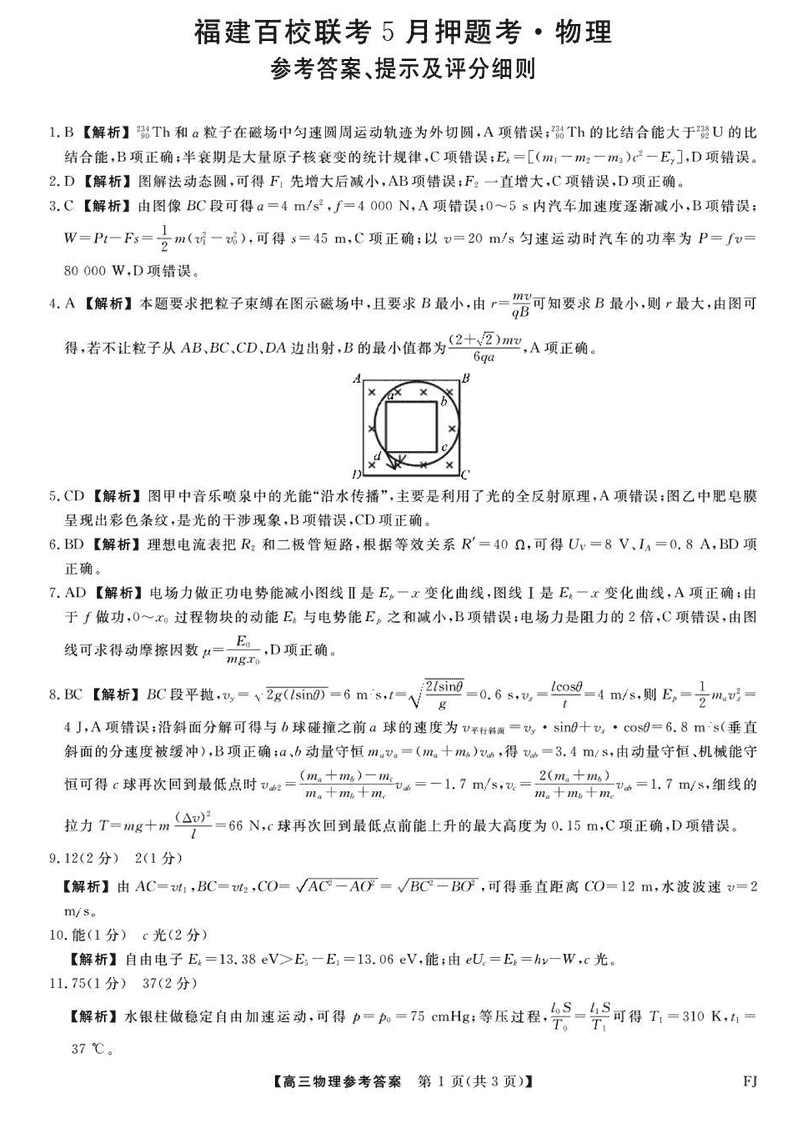 福建百校联考2025届高三5月押题物理试题及答案 时间:2025-05-30 福建 理综试题 福建百校联考2025届高三5月押题物理考试已于近日开考,为方便考生考后及时查看考试情况,查漏补缺、弥补不足,本文整理了试题答案解析相关信息! 汇总:福建百校联考2025届高三5月押题考试试题及答案汇总 物理试题及答案解析