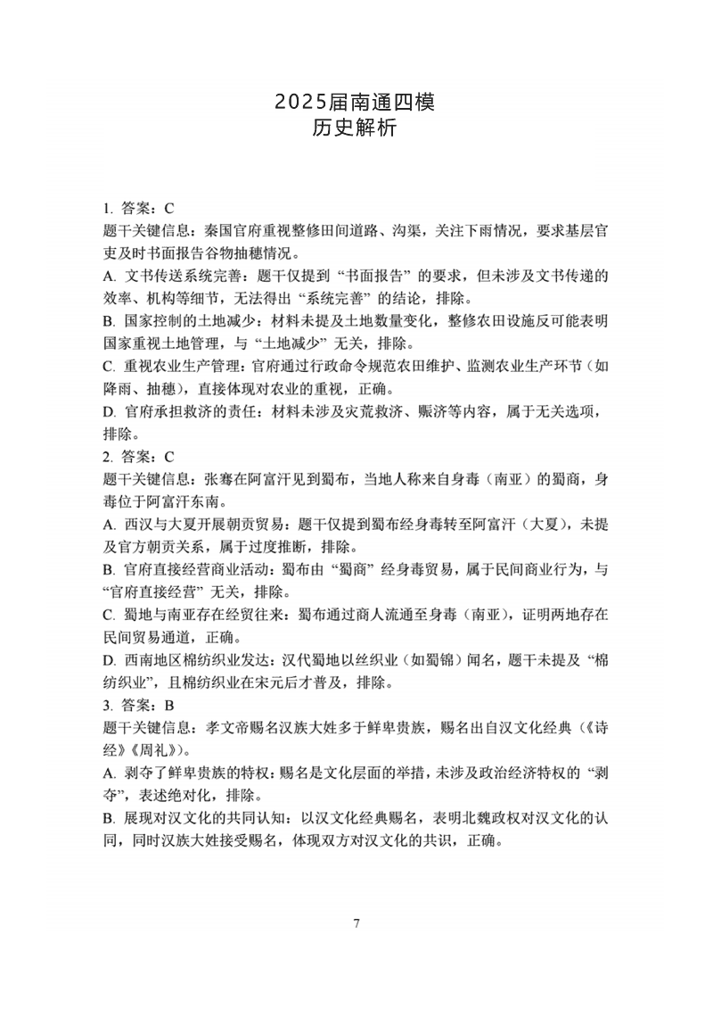 南通四模2025年5月高三练习卷历史试题及答案 时间:2025-05-30 江苏 文综试题 江苏省南通四模2025年5月高三练习卷历史考试已于近日开考,为方便考生考后及时查看考试情况,查漏补缺、弥补不足,本文整理了试题答案解析相关信息! 汇总:江苏省南通四模2025年5月高三练习卷试题及答案汇总 历史试题及答案解析
