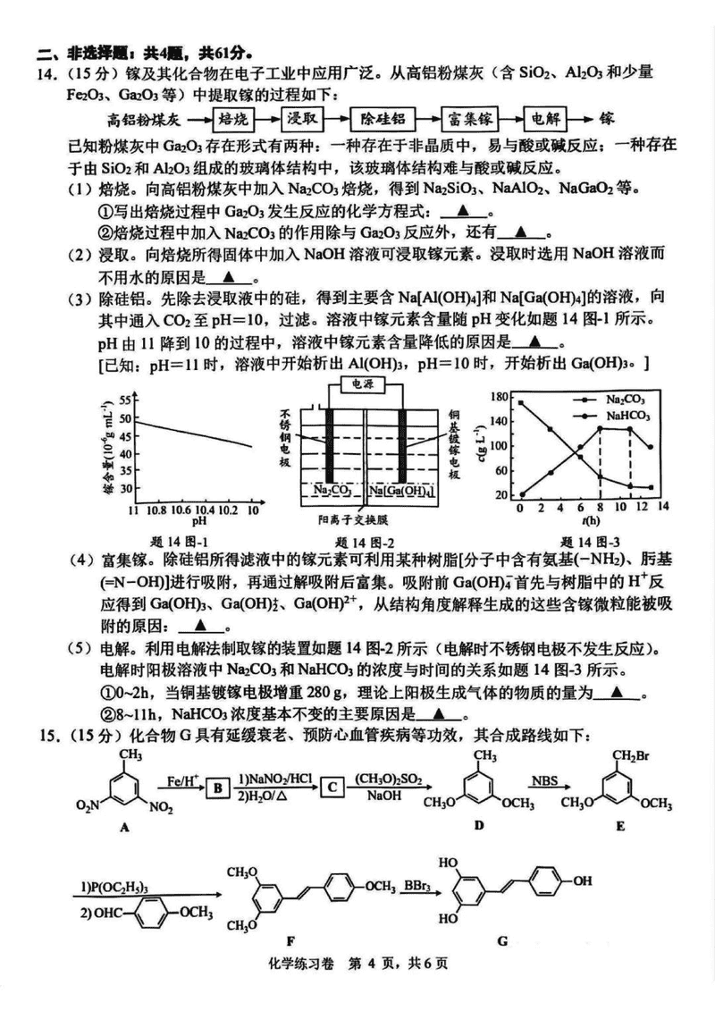 南通四模2025年5月高三练习卷化学试题及答案 时间:2025-05-30 江苏 理综试题 江苏省南通四模2025年5月高三练习卷化学考试已于近日开考,为方便考生考后及时查看考试情况,查漏补缺、弥补不足,本文整理了试题答案解析相关信息! 汇总:江苏省南通四模2025年5月高三练习卷试题及答案汇总 化学试题及答案解析
