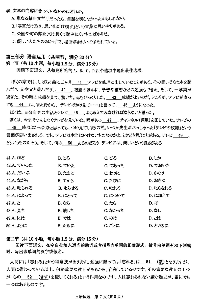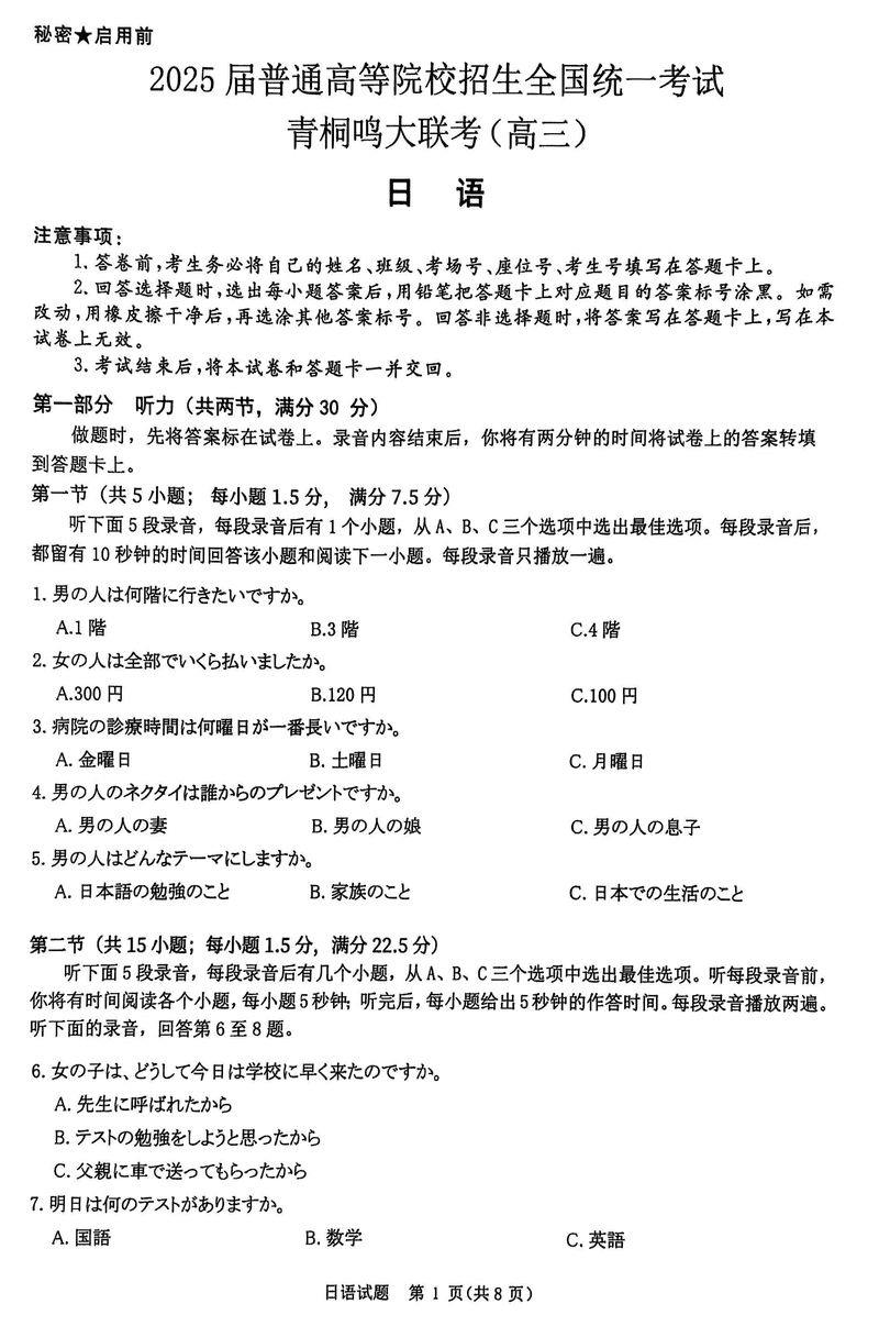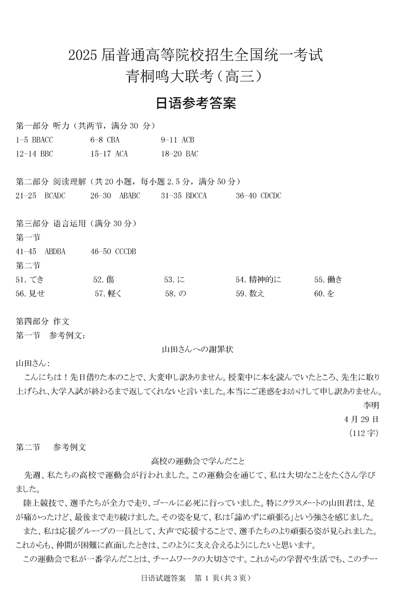 2025届河南青桐鸣5月全真模拟卷日语试题及答案 时间:2025-05-30 河南 英语试题 2025届河南省青桐鸣5月全真模拟卷日语考试已于近日开考,为方便考生考后及时查看考试情况,查漏补缺、弥补不足,本文整理了试题答案解析相关信息! 汇总:2025届河南省青桐鸣5月全真模拟卷试题及答案汇总 日语试题及答案解析