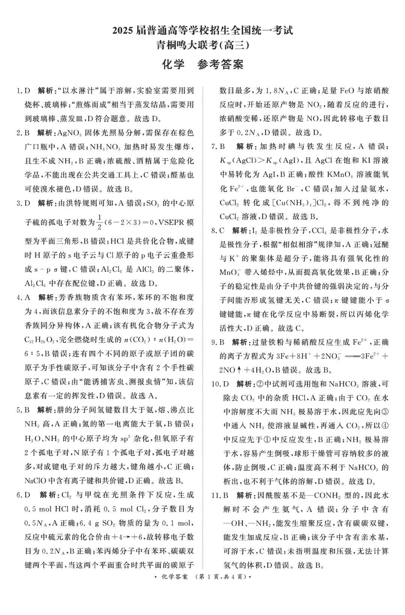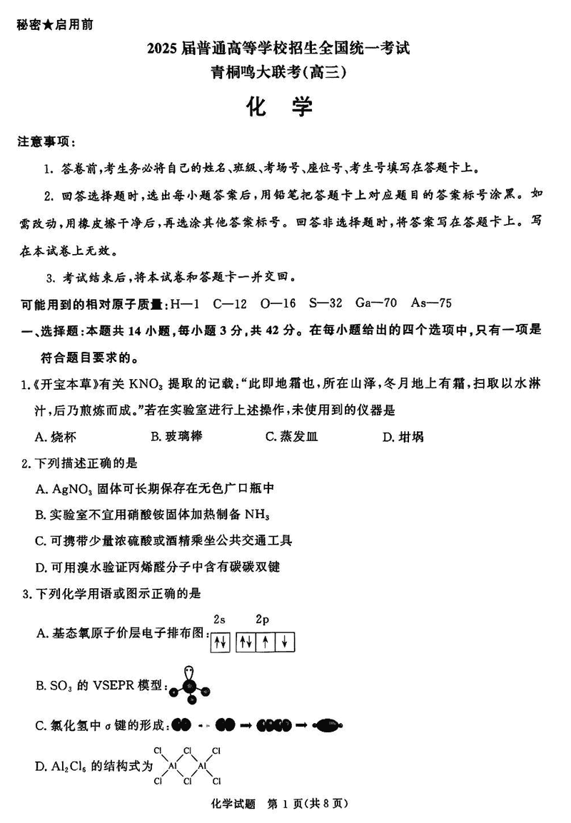2025届河南青桐鸣5月全真模拟卷化学试题及答案 时间:2025-05-30 河南 理综试题 2025届河南省青桐鸣5月全真模拟卷化学考试已于近日开考,为方便考生考后及时查看考试情况,查漏补缺、弥补不足,本文整理了试题答案解析相关信息! 汇总:2025届河南省青桐鸣5月全真模拟卷试题及答案汇总 化学试题及答案解析