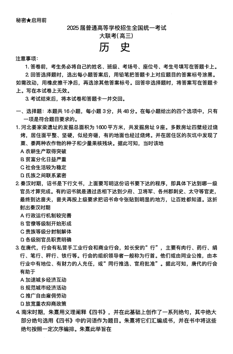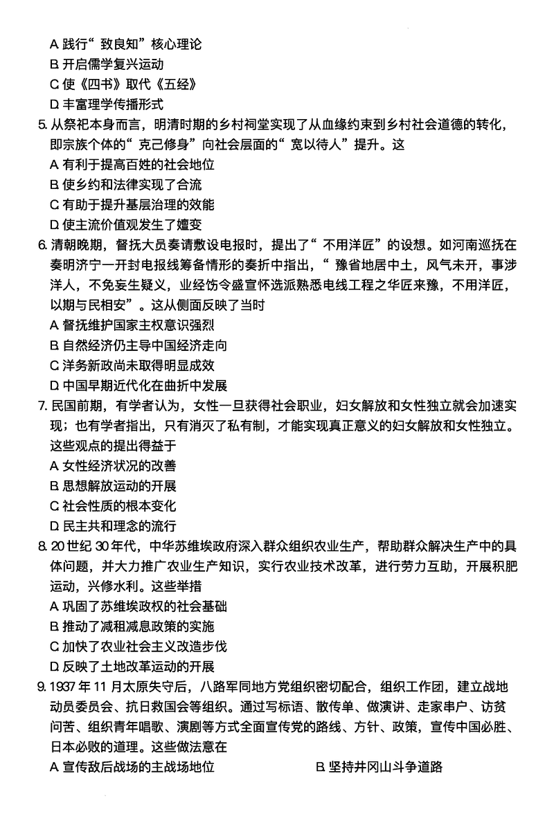 2025届河南青桐鸣5月全真模拟卷历史试题及答案 时间:2025-05-30 河南 文综试题 2025届河南省青桐鸣5月全真模拟卷历史考试已于近日开考,为方便考生考后及时查看考试情况,查漏补缺、弥补不足,本文整理了试题答案解析相关信息! 汇总:2025届河南省青桐鸣5月全真模拟卷试题及答案汇总 历史试题及答案解析