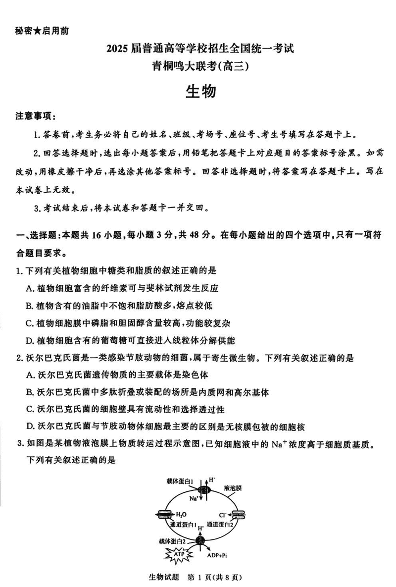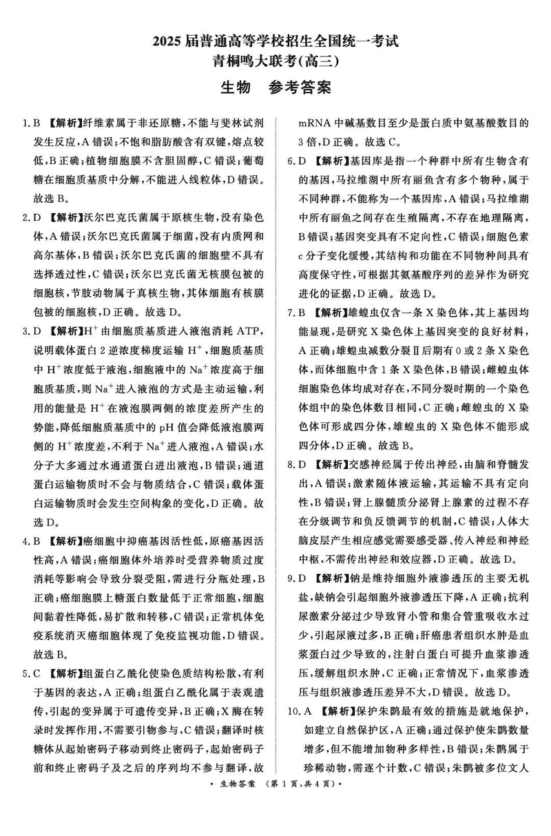 2025届河南青桐鸣5月全真模拟卷生物试题及答案 时间:2025-05-30 河南 理综试题 2025届河南省青桐鸣5月全真模拟卷生物考试已于近日开考,为方便考生考后及时查看考试情况,查漏补缺、弥补不足,本文整理了试题答案解析相关信息! 汇总:2025届河南省青桐鸣5月全真模拟卷试题及答案汇总 生物试题及答案解析