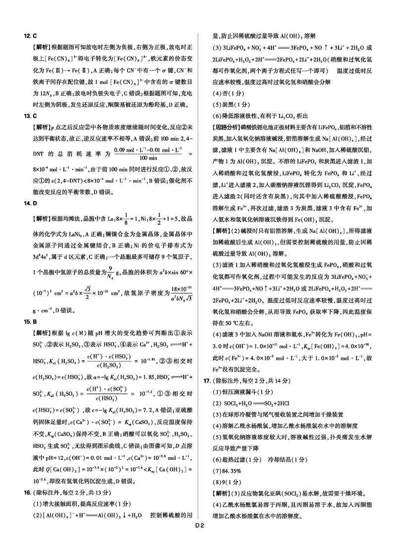 东北三省精准教学联盟2025届高三5月联考化学试题及答案