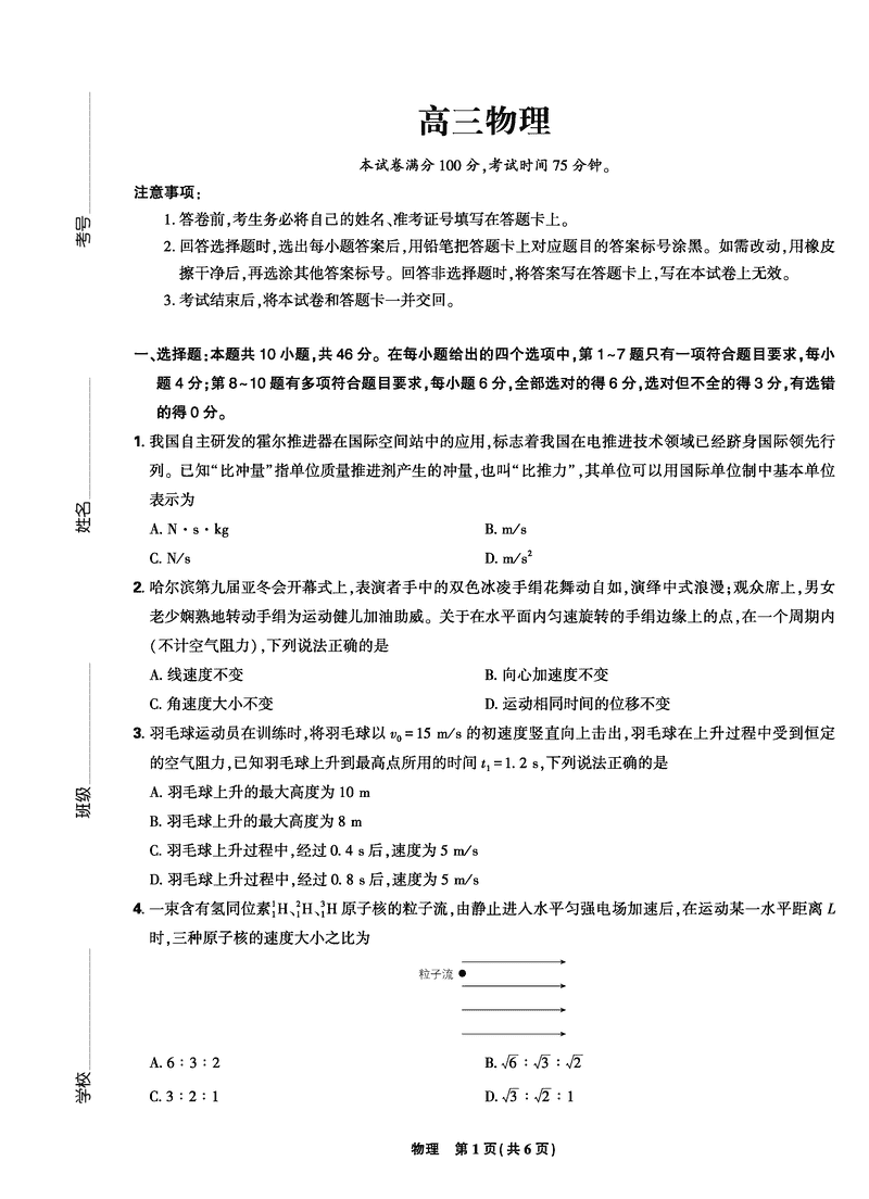 东北三省精准教学联盟2025届高三5月联考物理试题及答案