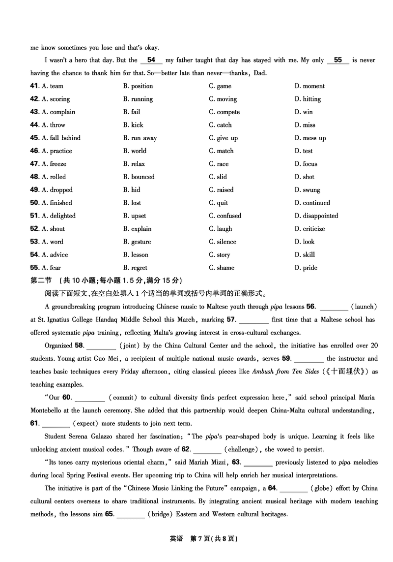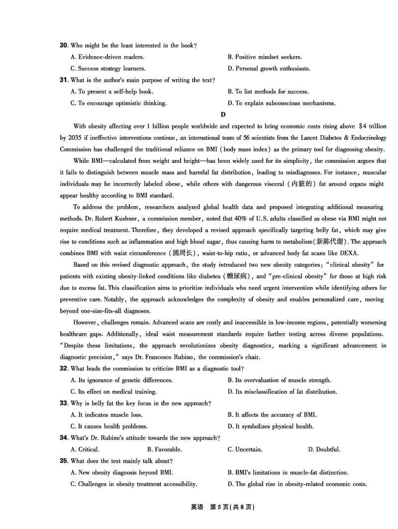 东北三省精准教学联盟2025届高三5月联考英语试题及答案
