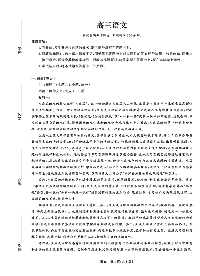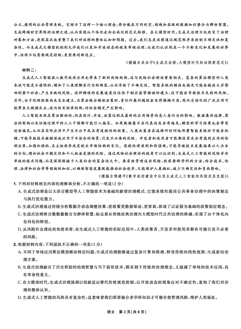 东北三省精准教学联盟2025届高三5月联考语文试题及答案