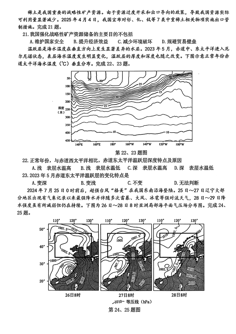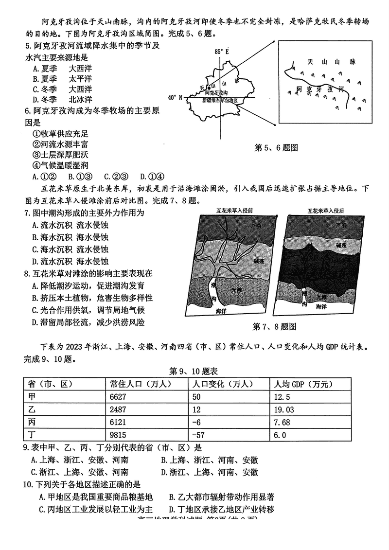浙江北斗星盟2025届高三5月三模地理试题及答案