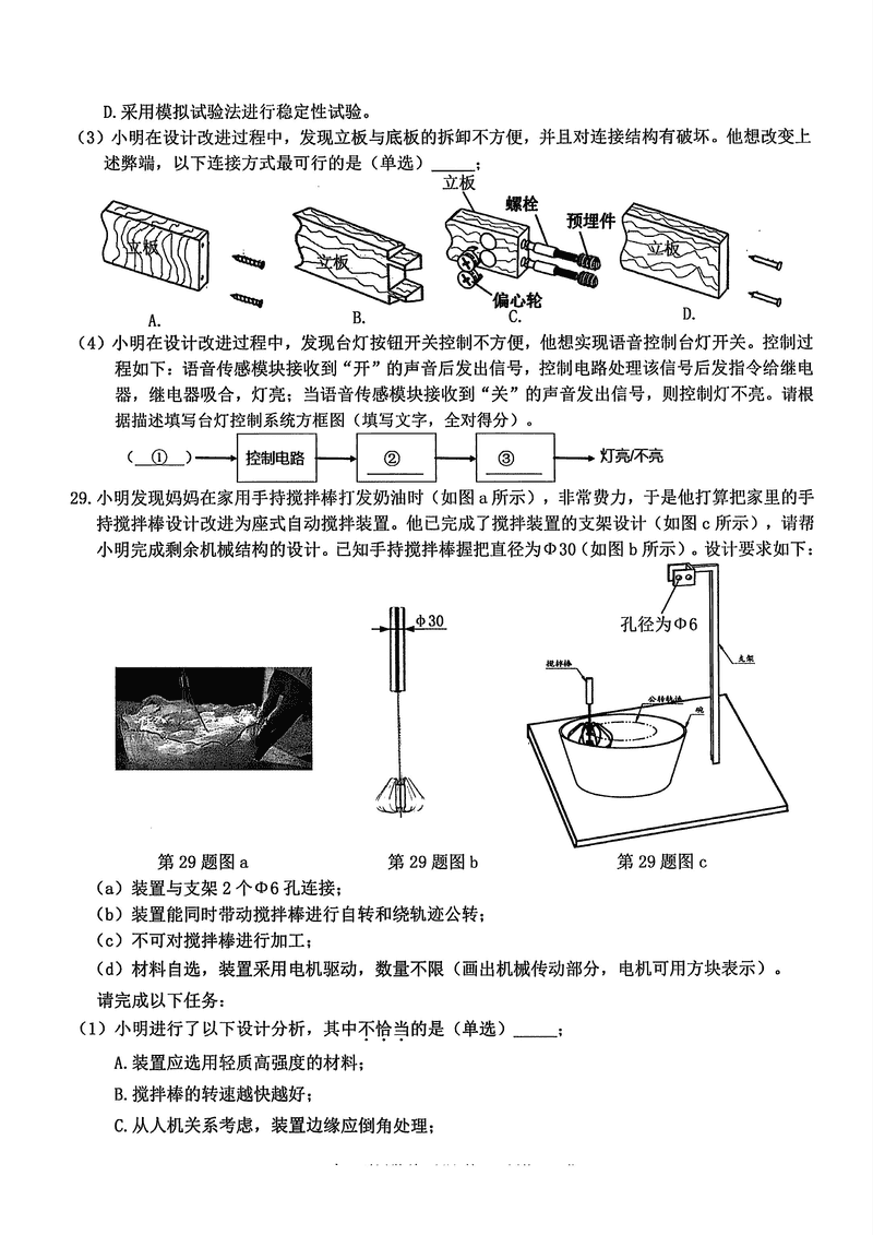 浙江北斗星盟2025届高三5月三模技术试题及答案