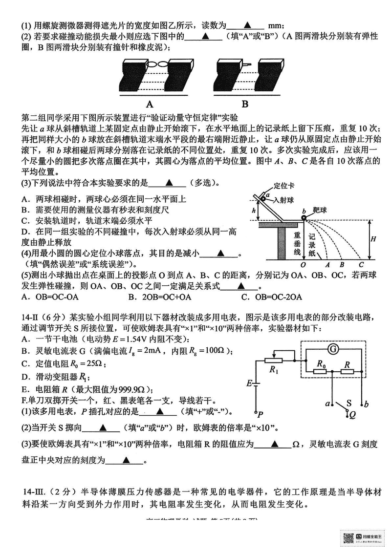 浙江省北斗星盟2025届高三5月三模物理考试已于近日开考,为方便考生考后及时查看考试情况,查漏补缺、弥补不足,本文整理了试题答案解析相关信息!