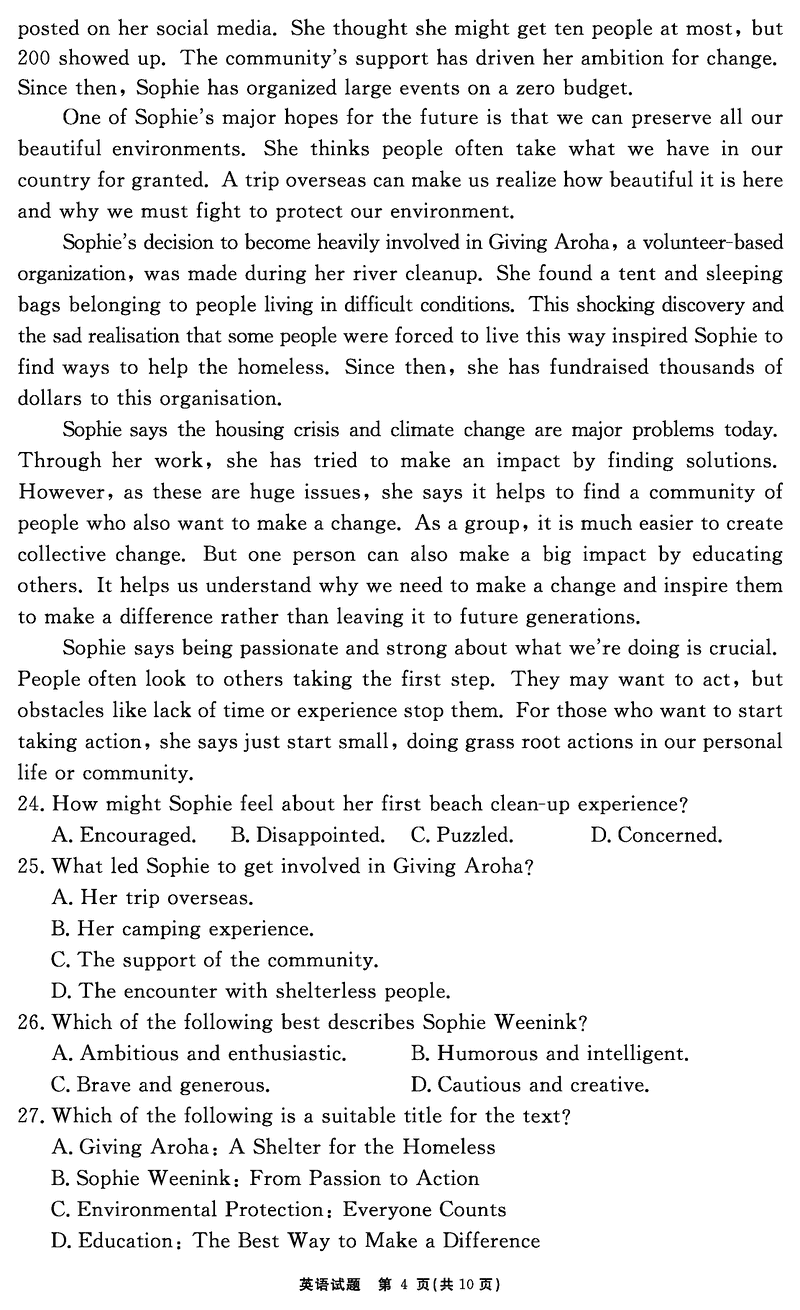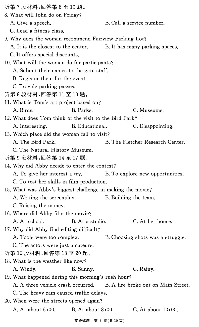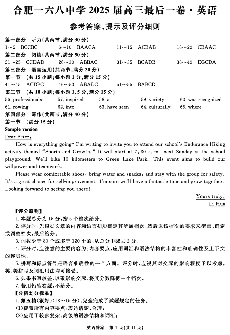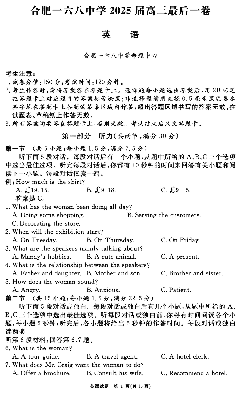 合肥一六八中学2025届高三最后一卷英语试题及答案 时间:2025-06-01 安徽 英语试题 合肥一六八中学2025届高三最后一卷英语考试已于近日开考,为方便考生考后及时查看考试情况,查漏补缺、弥补不足,本文整理了试题答案解析相关信息! 汇总:合肥一六八中学2025届高三最后一卷试题及答案汇总 英语试题及答案解析