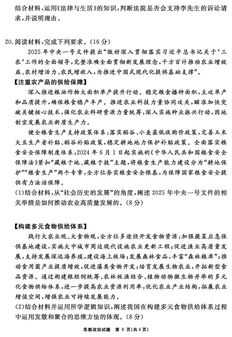 合肥一六八中学2025届高三最后一卷政治试题及答案 时间:2025-06-01 安徽 文综试题 合肥一六八中学2025届高三最后一卷政治考试已于近日开考,为方便考生考后及时查看考试情况,查漏补缺、弥补不足,本文整理了试题答案解析相关信息! 汇总:合肥一六八中学2025届高三最后一卷试题及答案汇总 政治试题及答案解析