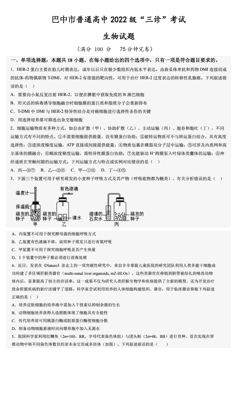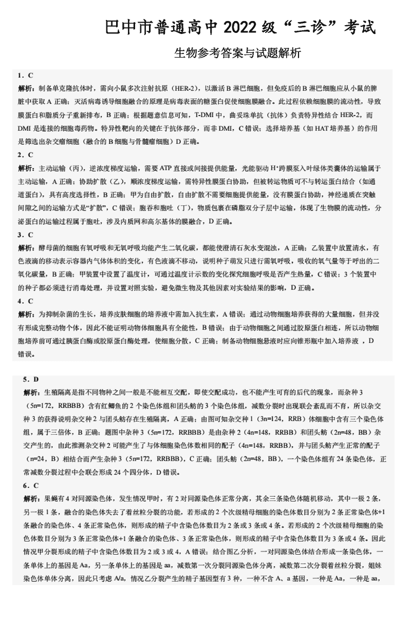 巴中市普通高中2025届“三诊”生物考试已于近日开考,为方便考生考后及时查看考试情况,查漏补缺、弥补不足,本文整理了试题答案解析相关信息!