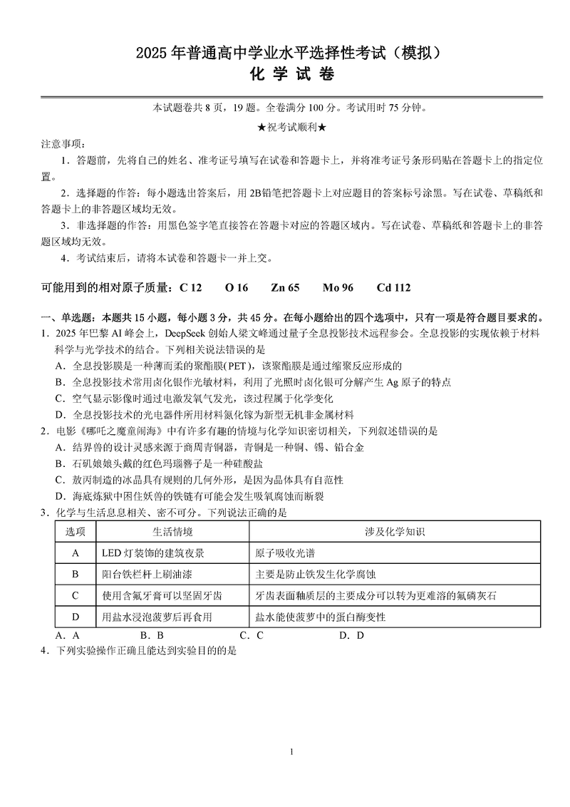 湖北省沙市中学2025届高三下学期5月高考模拟化学考试已于近日开考,为方便考生考后及时查看考试情况,查漏补缺、弥补不足,本文整理了试题答案解析相关信息!