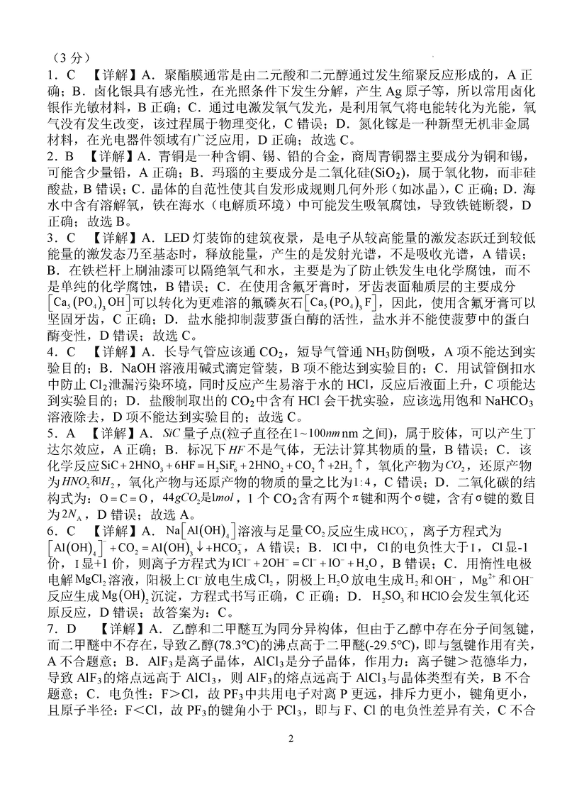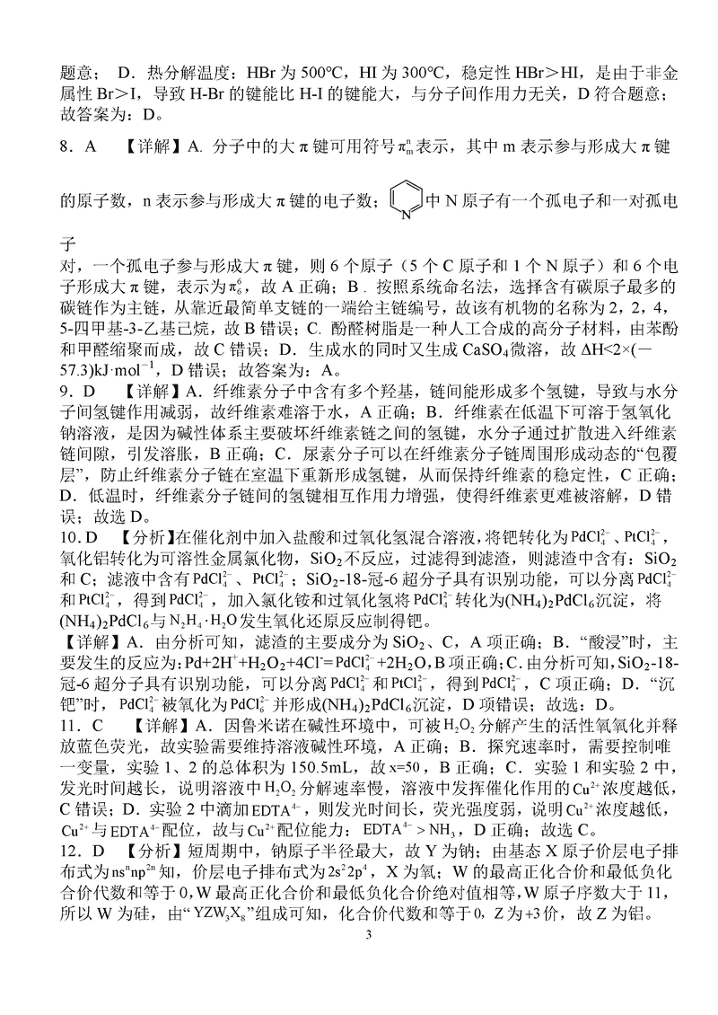 化学试题及答案解析