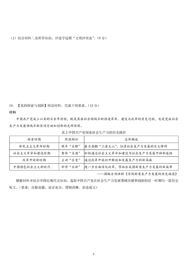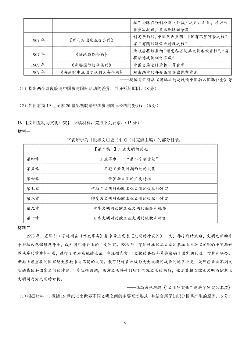 沙市中学2025届高三下学期5月高考模拟历史试题及答案