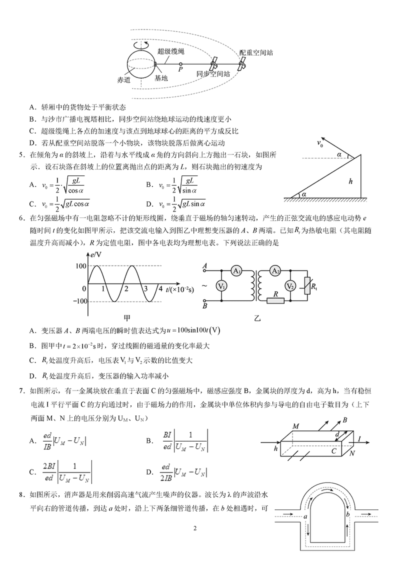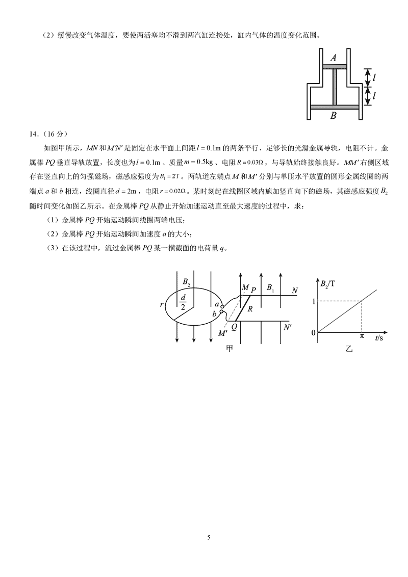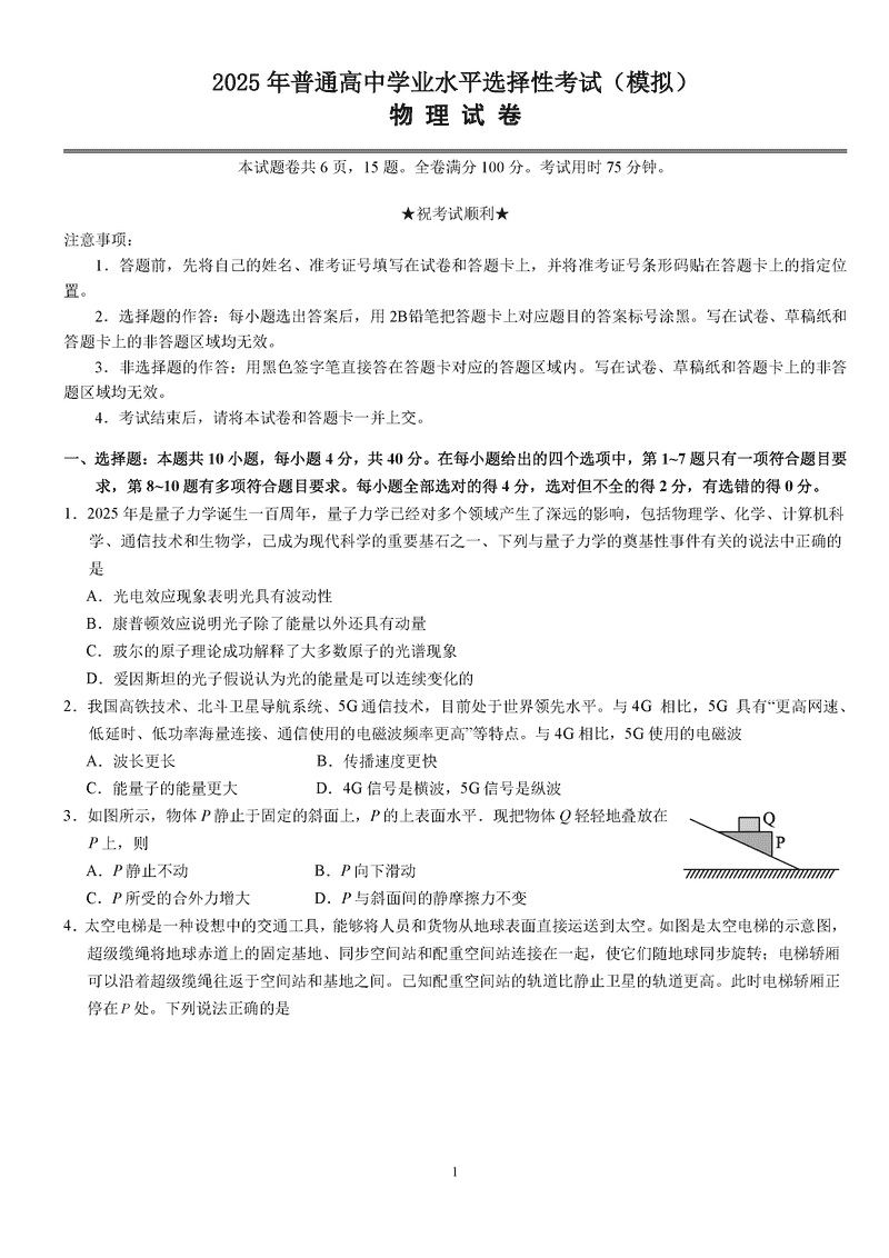 沙市中学2025届高三下学期5月高考模拟物理试题及答案
