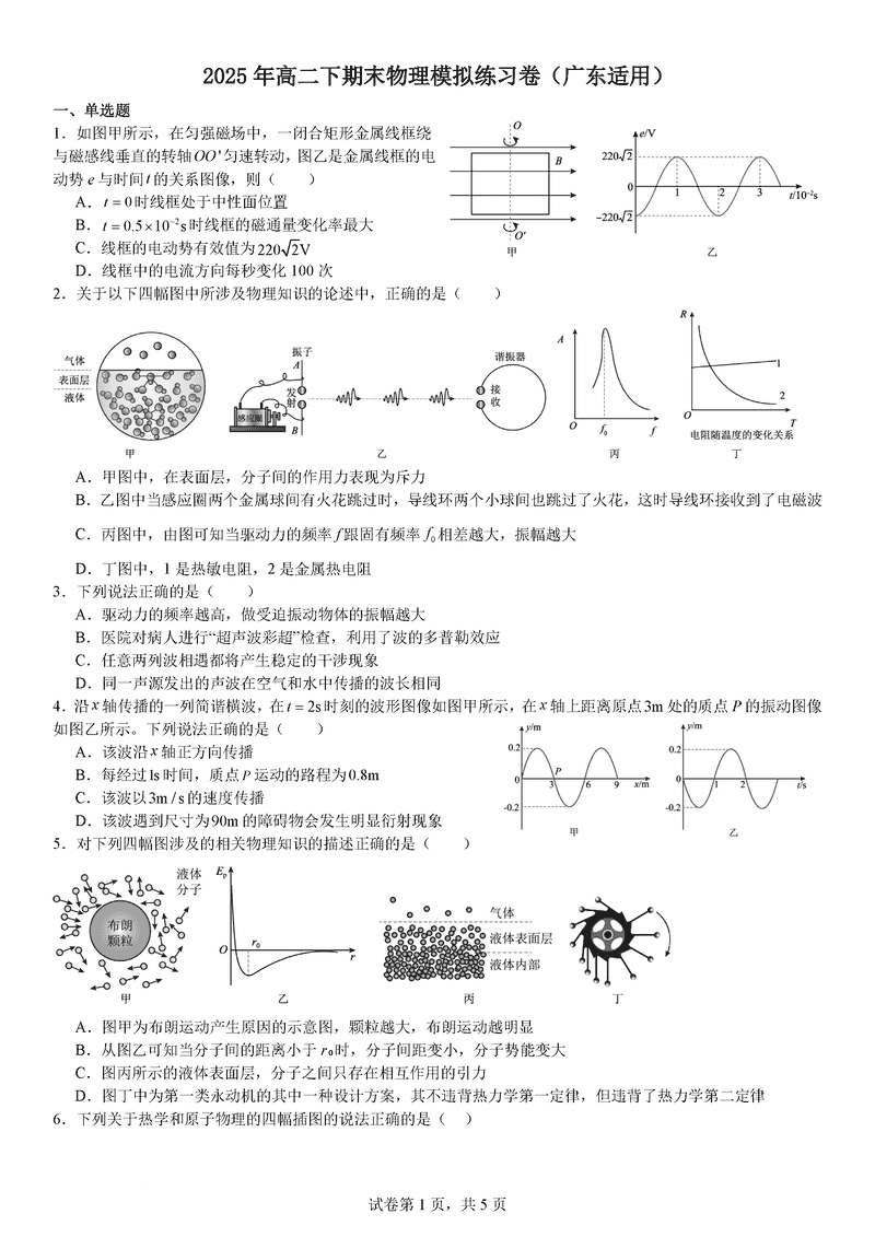 2025年广东适用高二下期末模拟练习卷物理试题及答案 时间:2025-06-10 广东 高中物理 2025年广东适用高二下期末模拟练习卷物理考试已于近日开考,为方便考生考后及时查看考试情况,查漏补缺、弥补不足,本文整理了试题答案解析相关信息! 汇总: 物理试题及答案解析