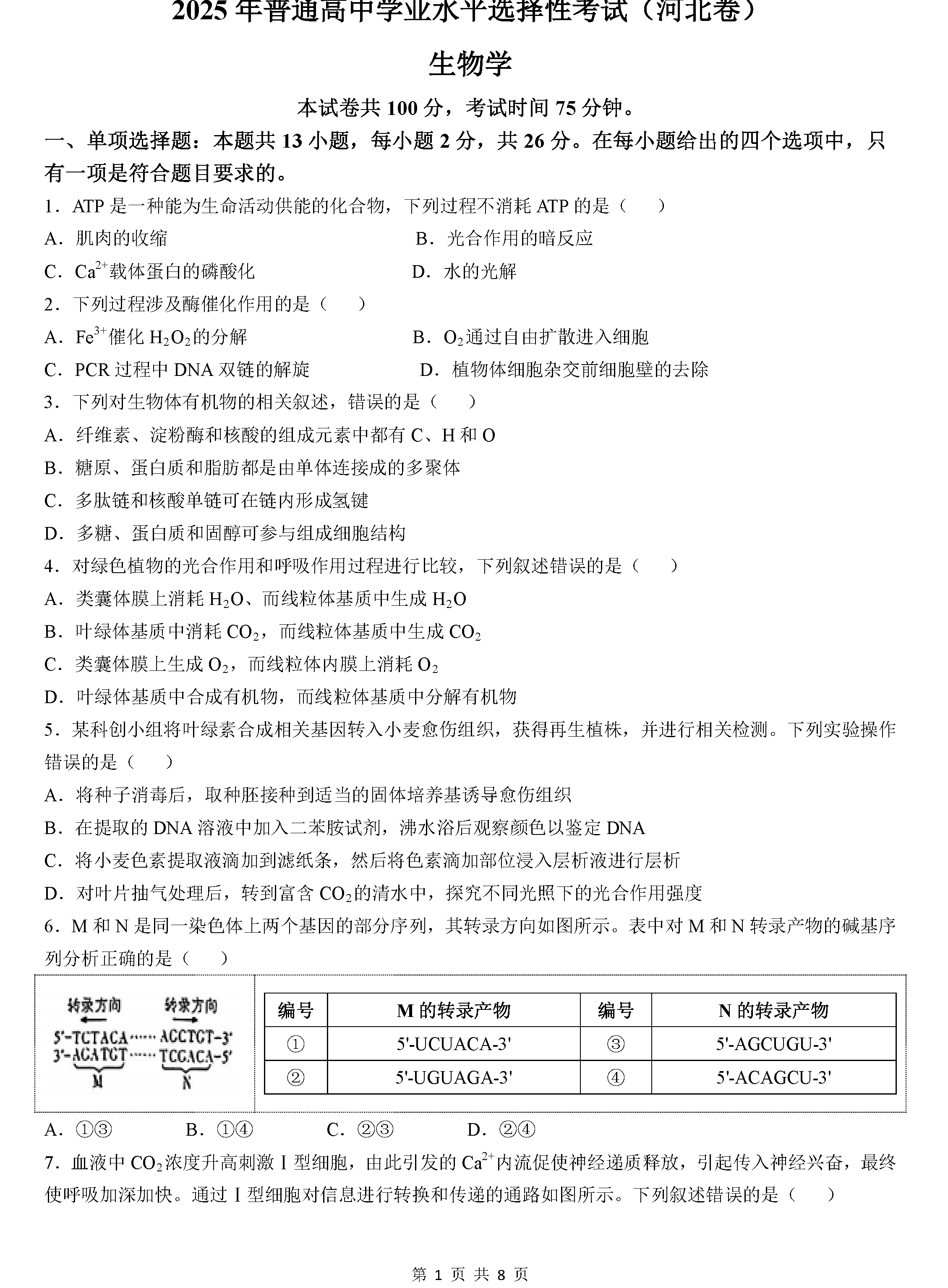 2025年河北高考生物试题及答案解析