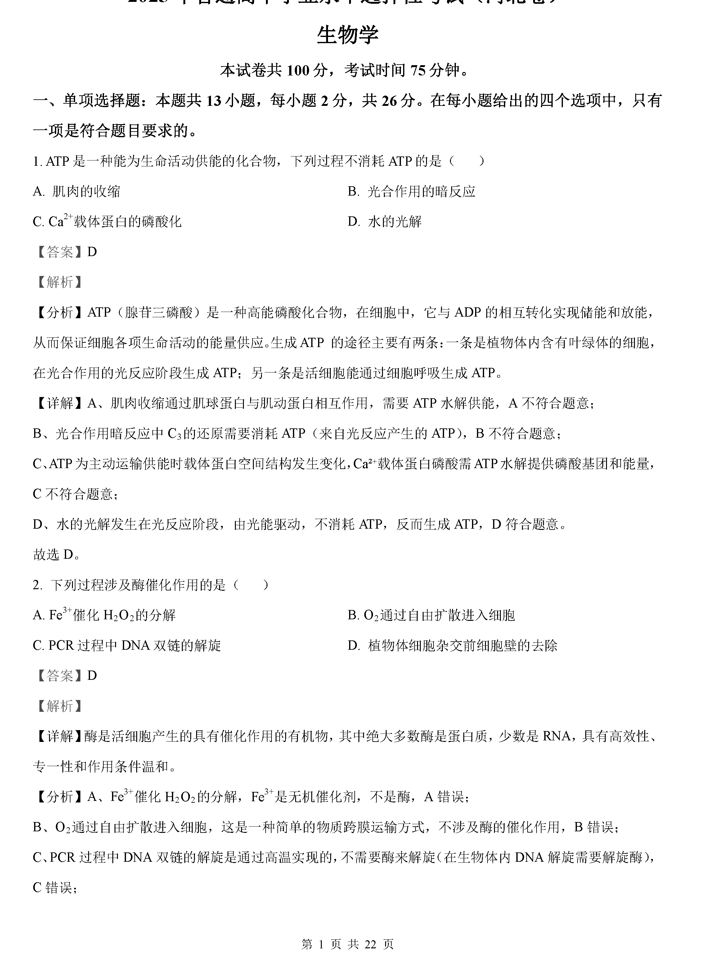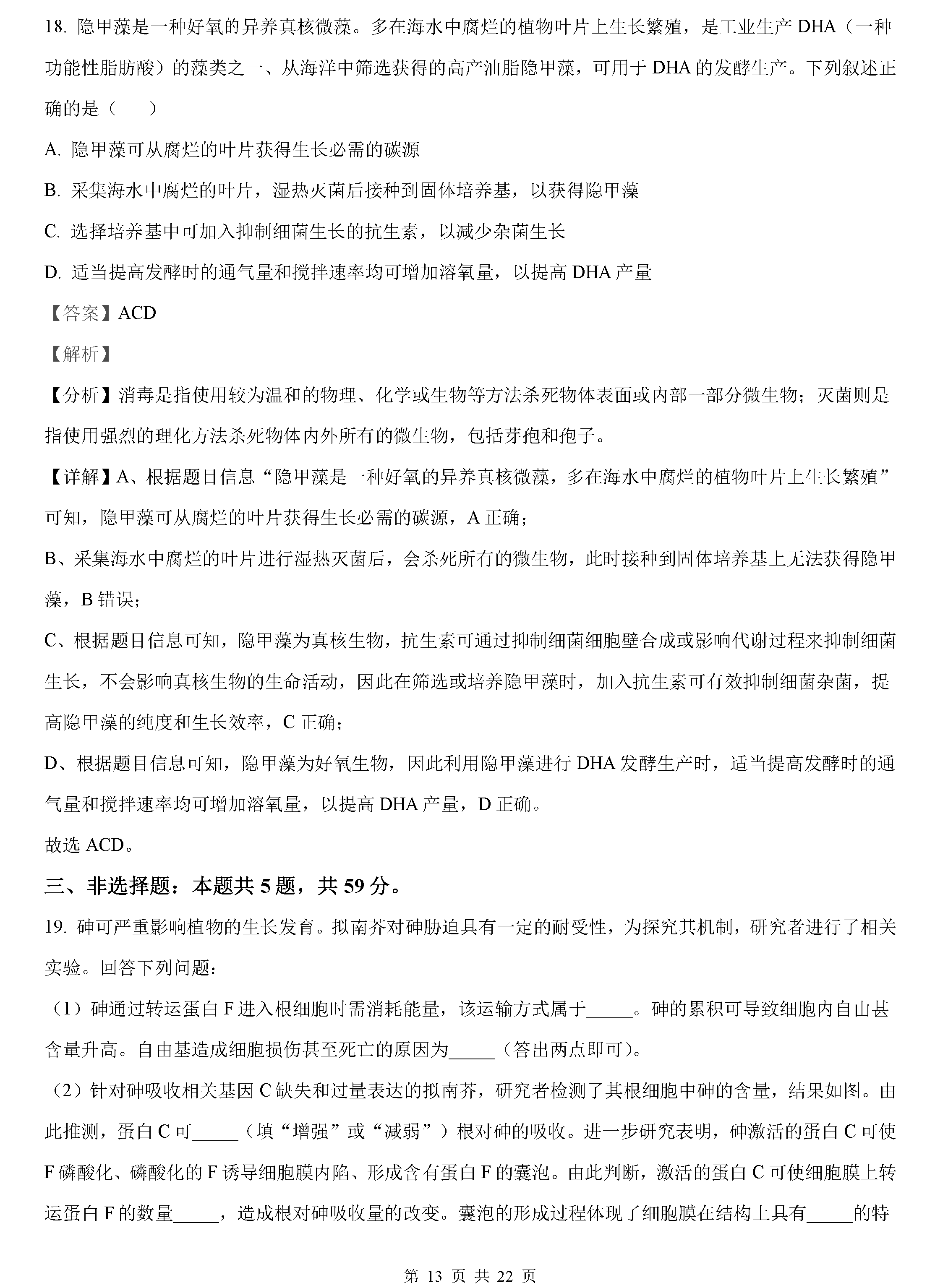 2022年湖南高考生物试卷真题及答案解析(已更新)