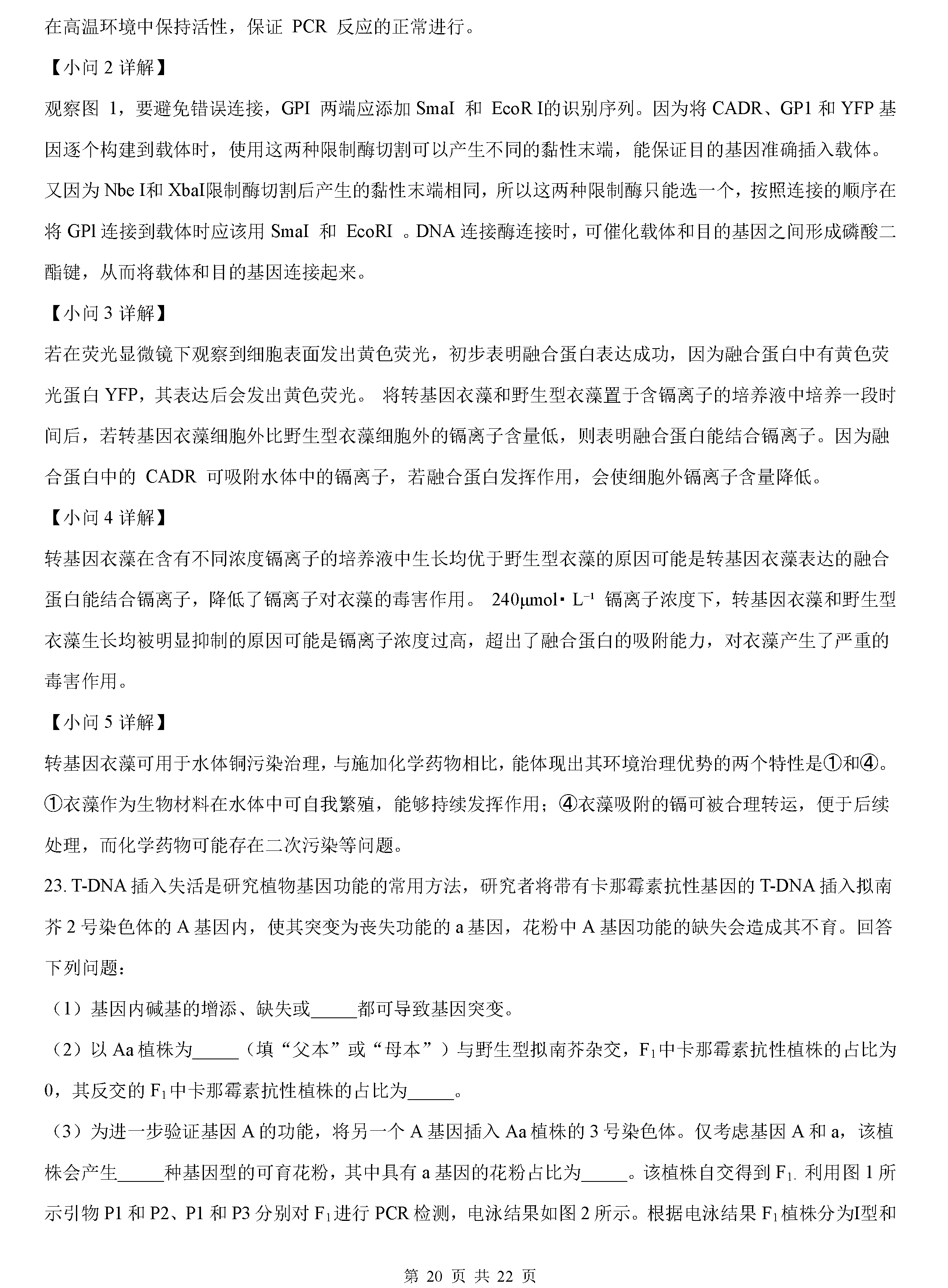 2022年广东高考生物试卷真题及答案解析