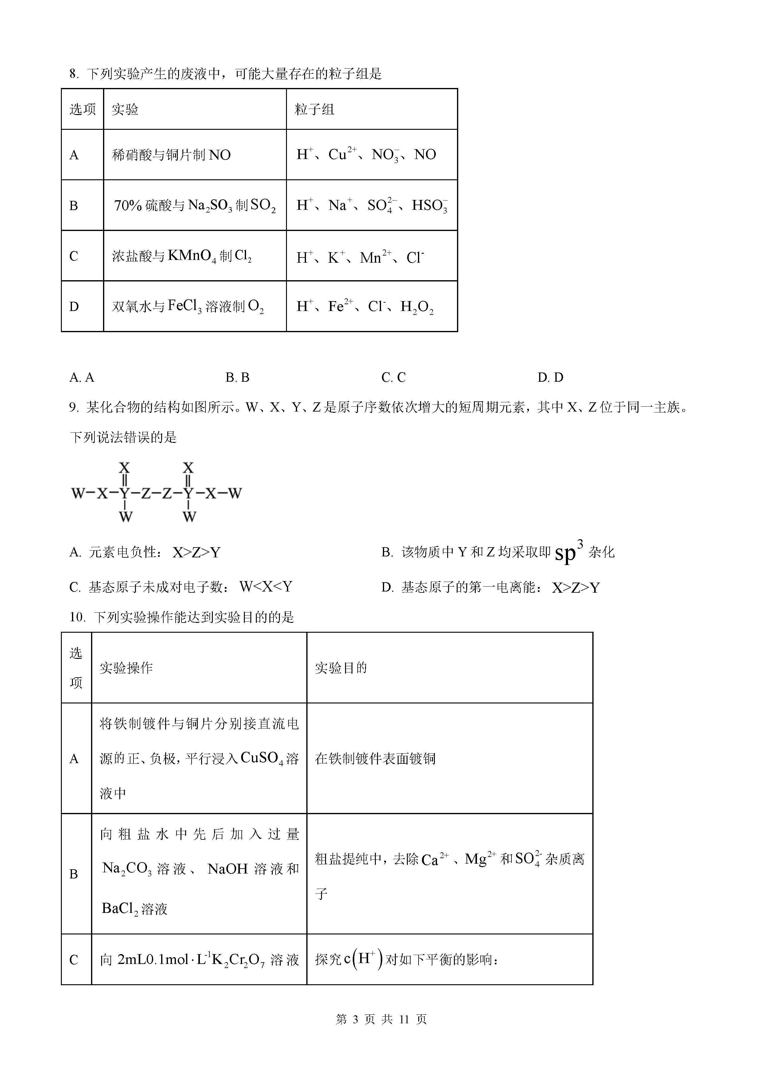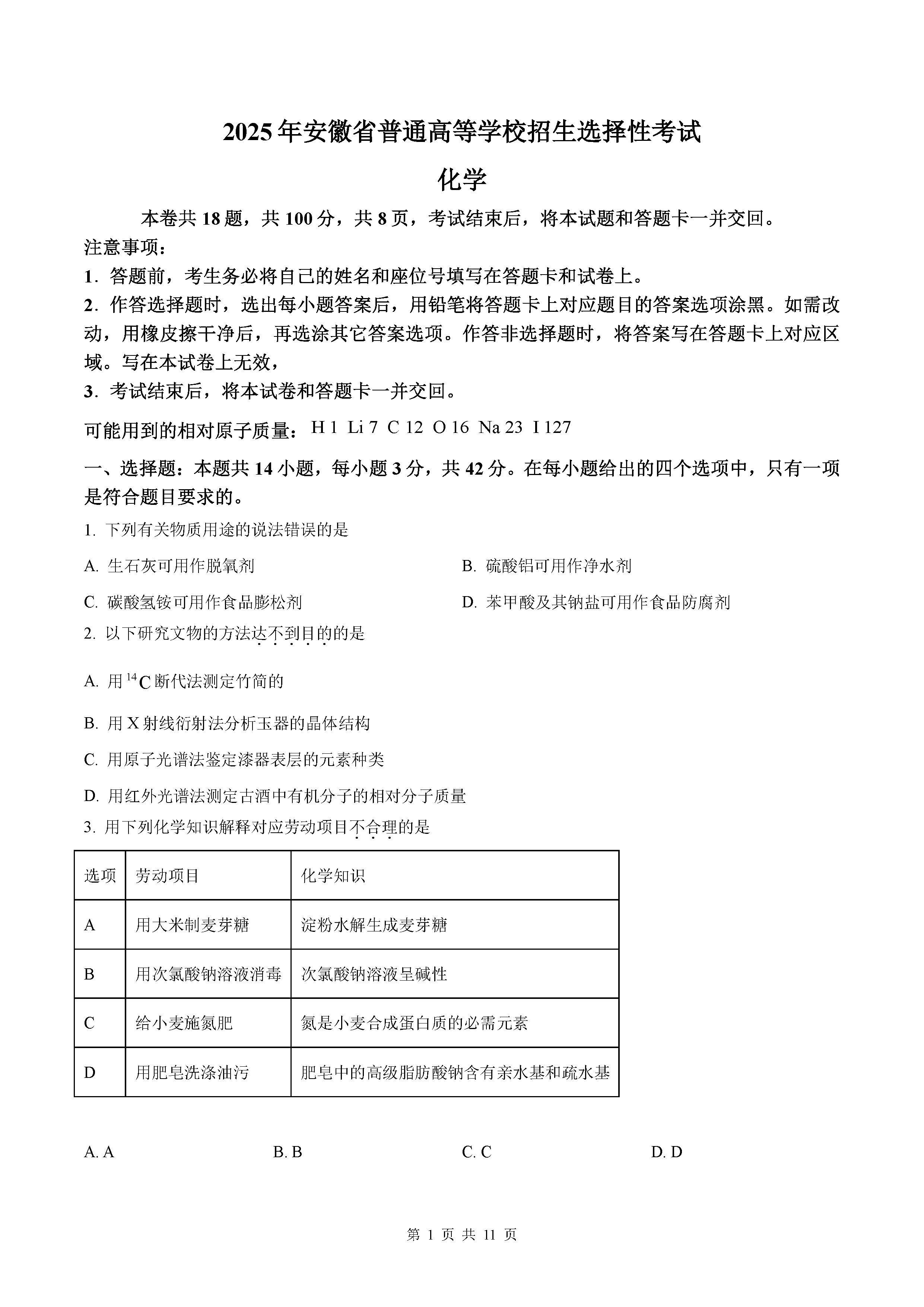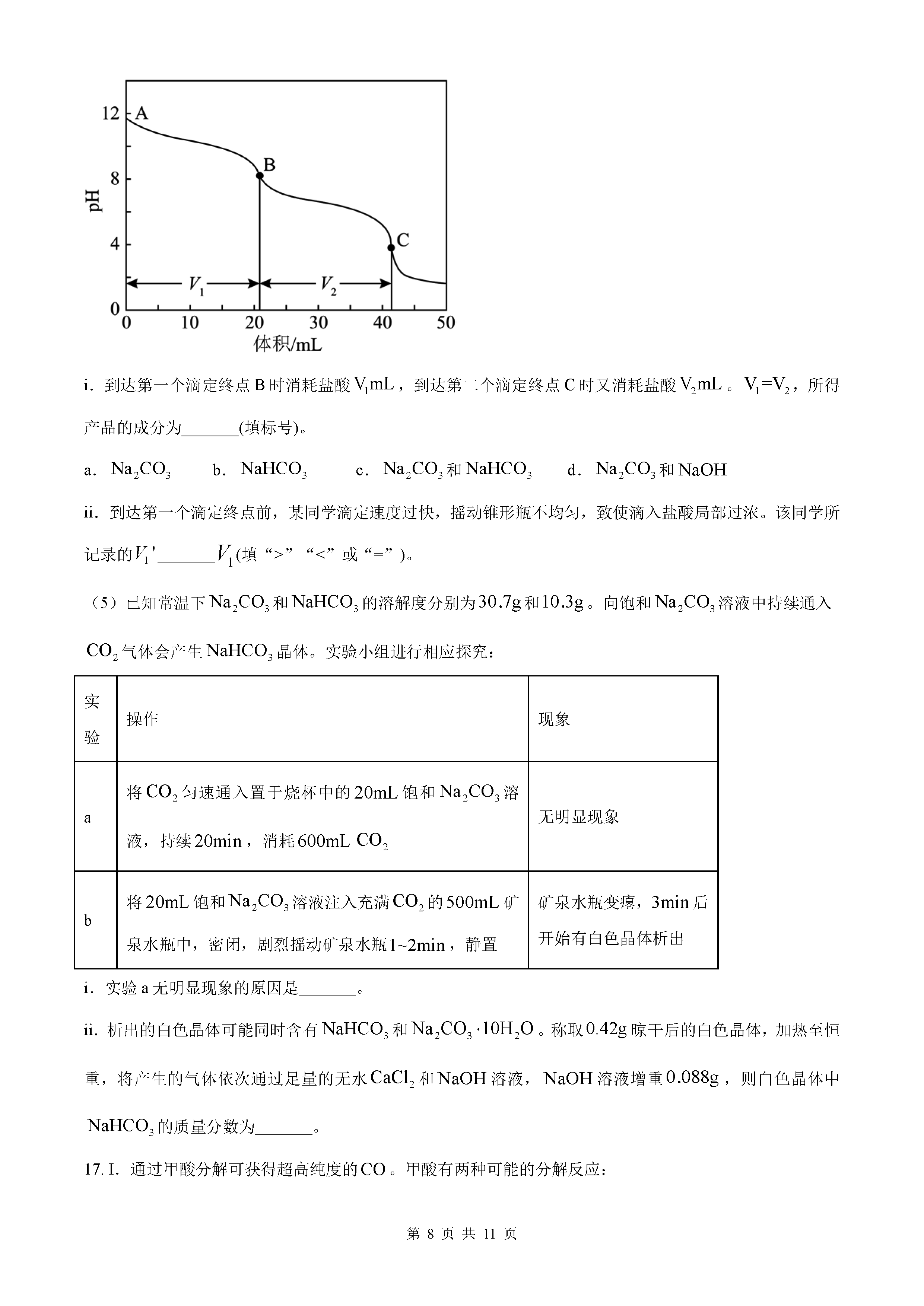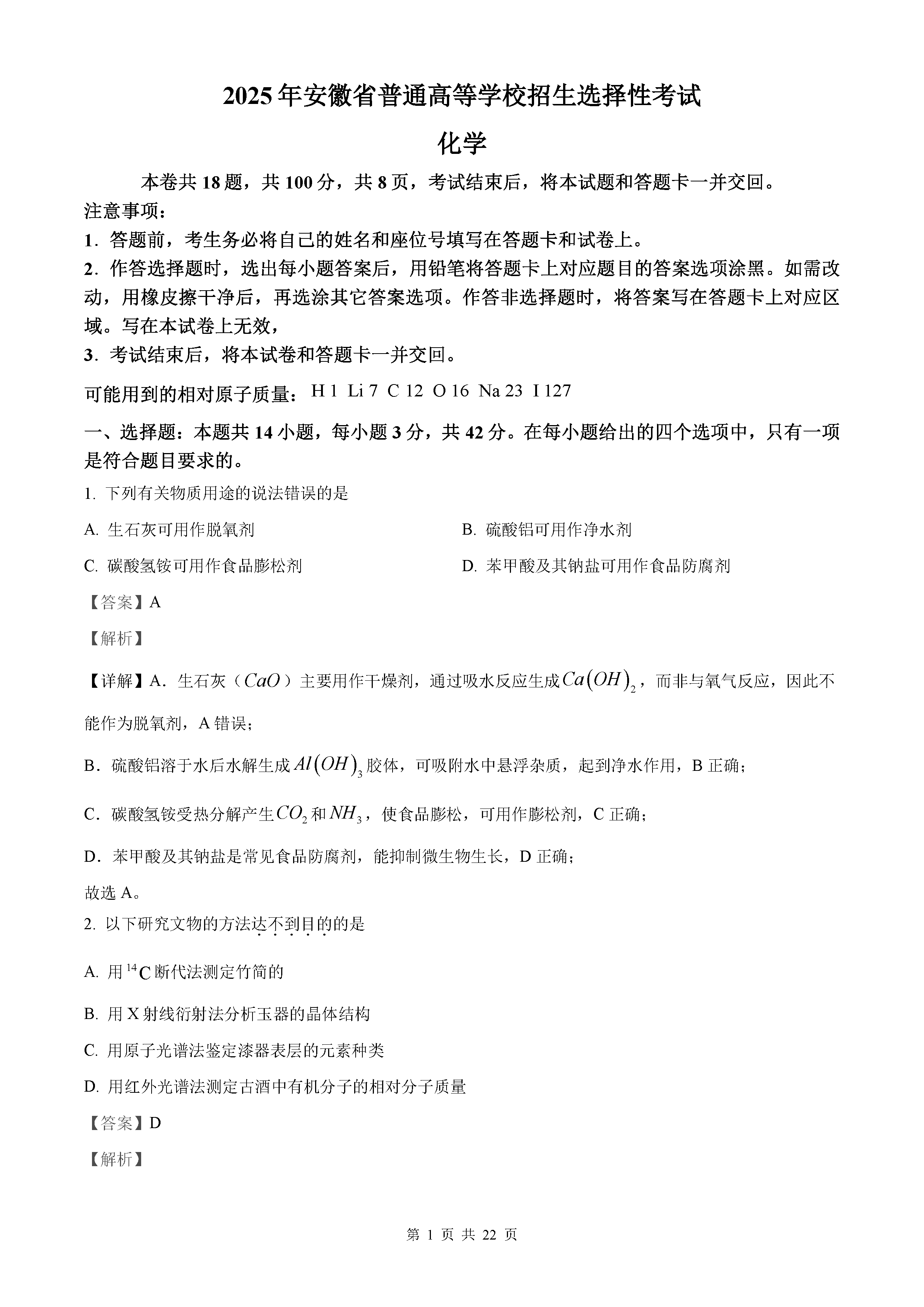 合肥一六八中学2025届高三最后一卷化学试题及答案