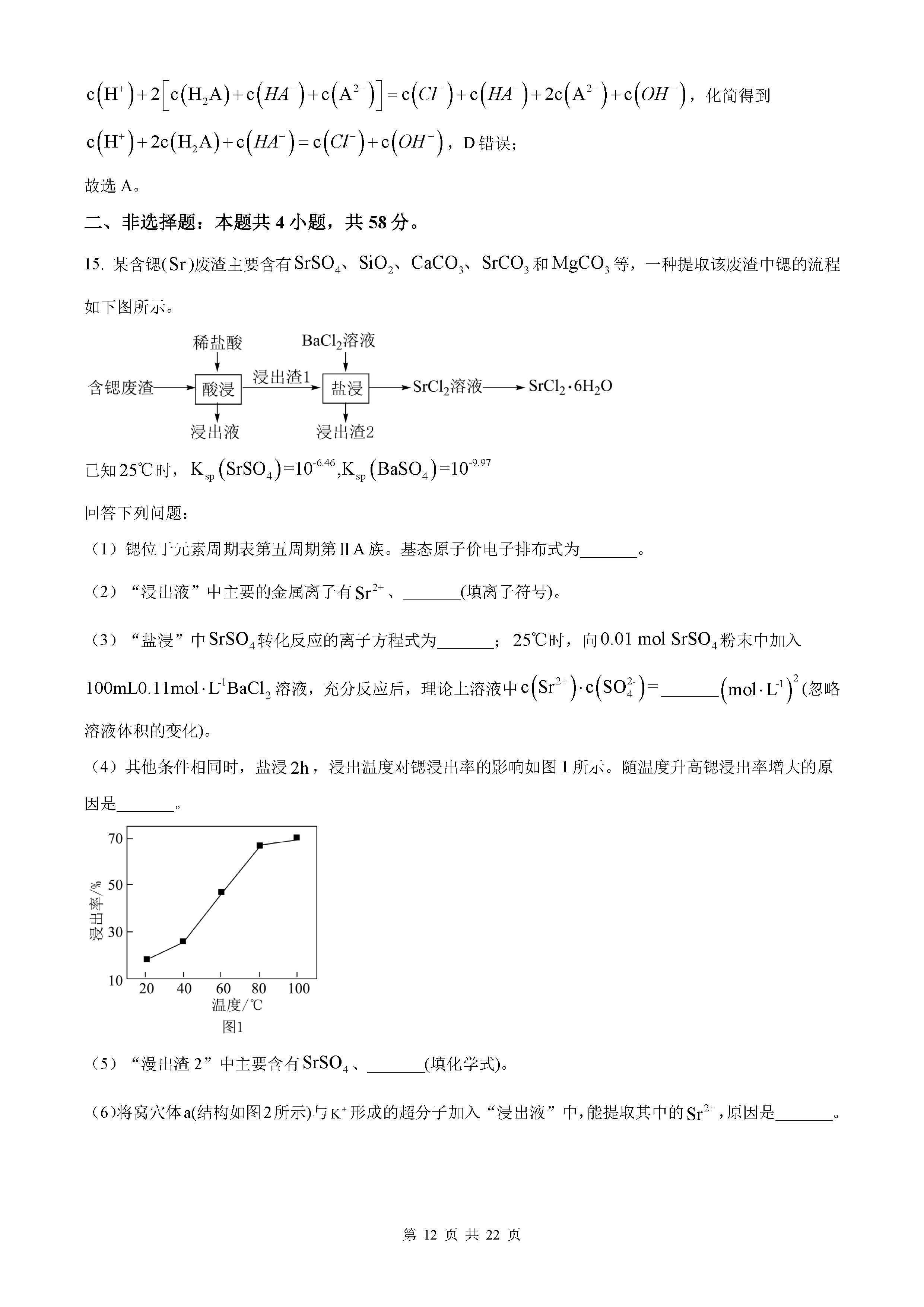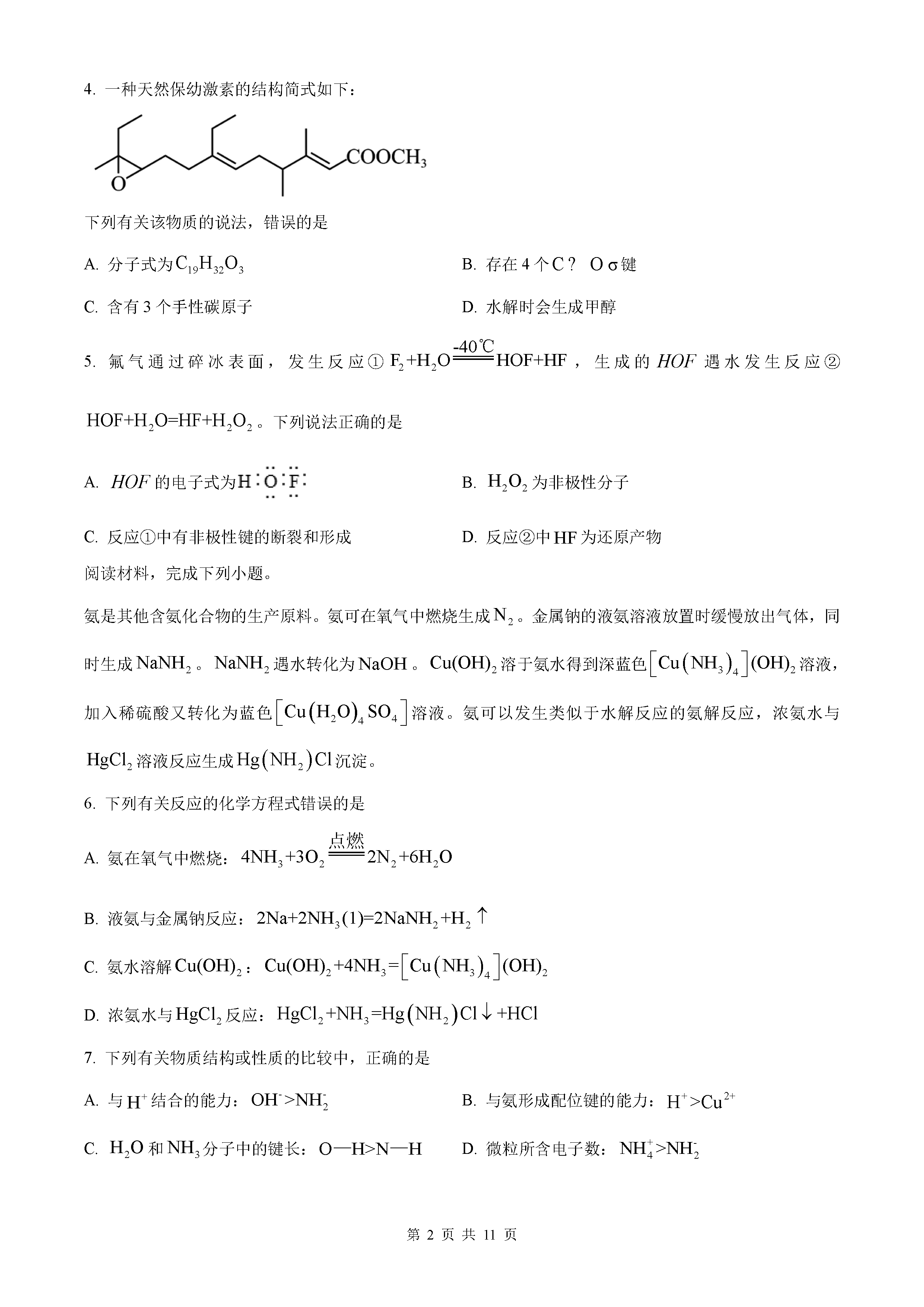 安徽九师联盟2025届高三5月考前押题化学试题及答案
