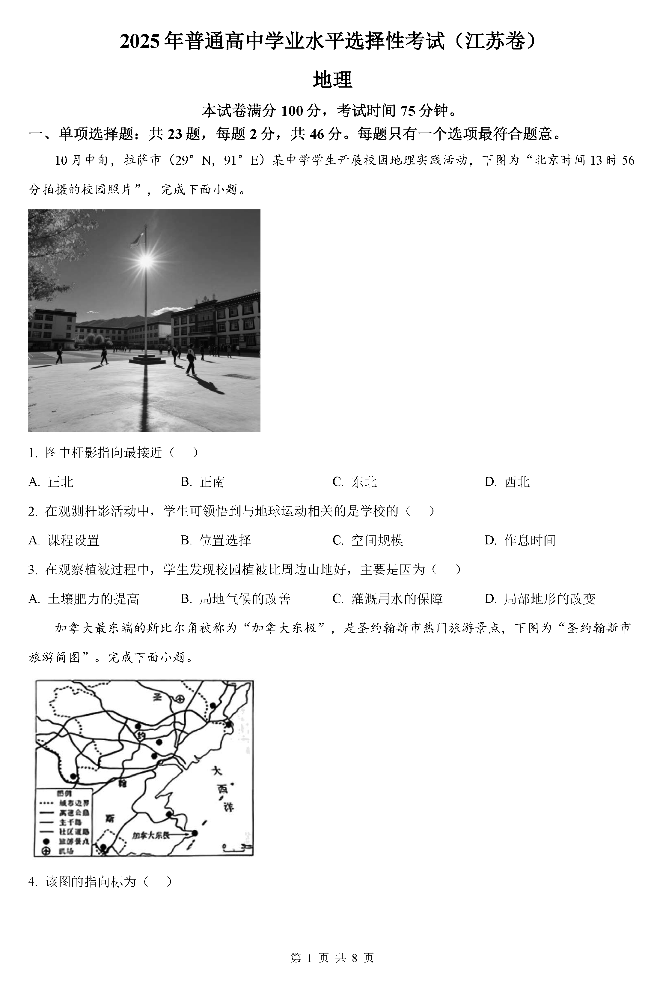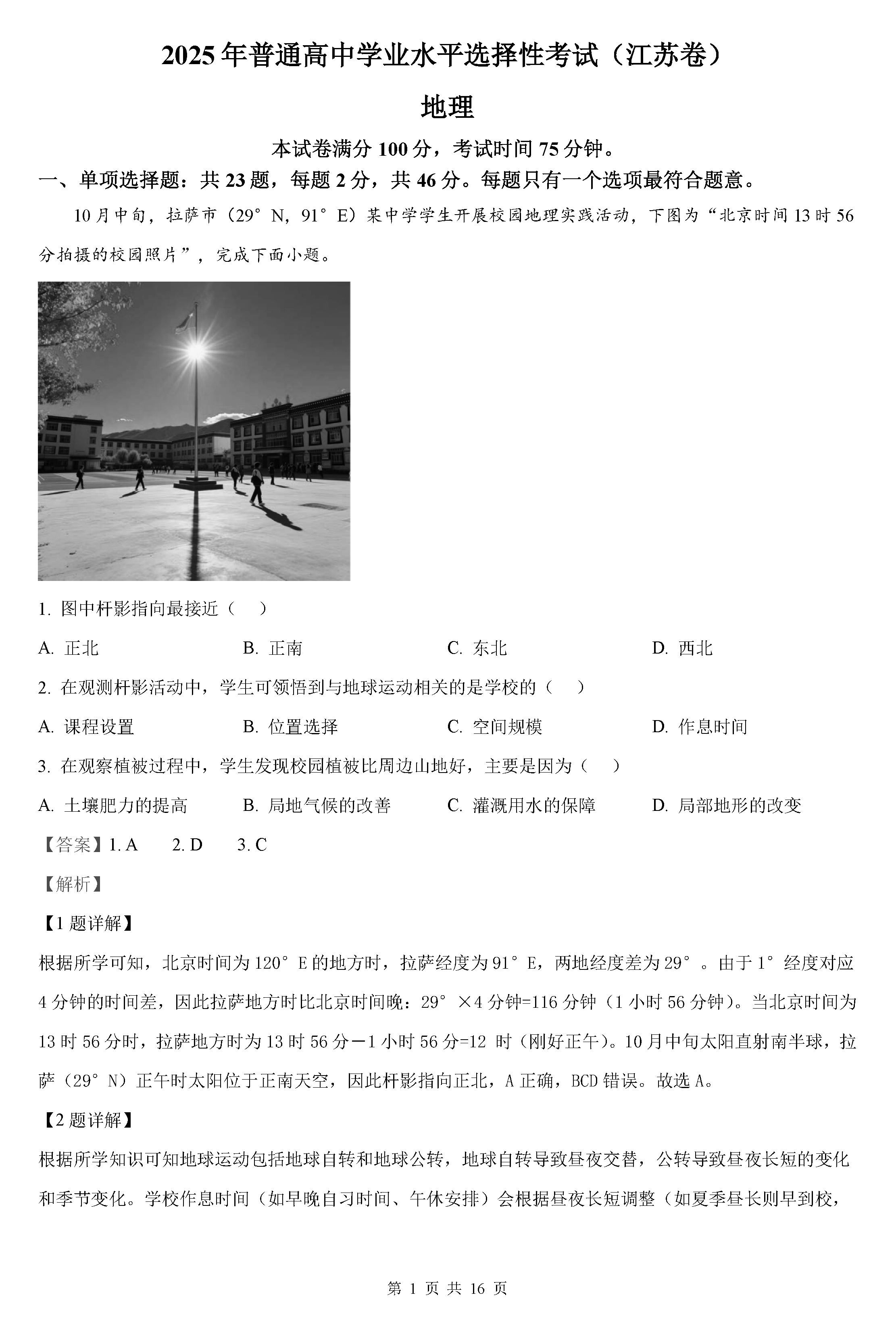 2025届江苏盐城高三下学期考前指导卷地理试题及答案