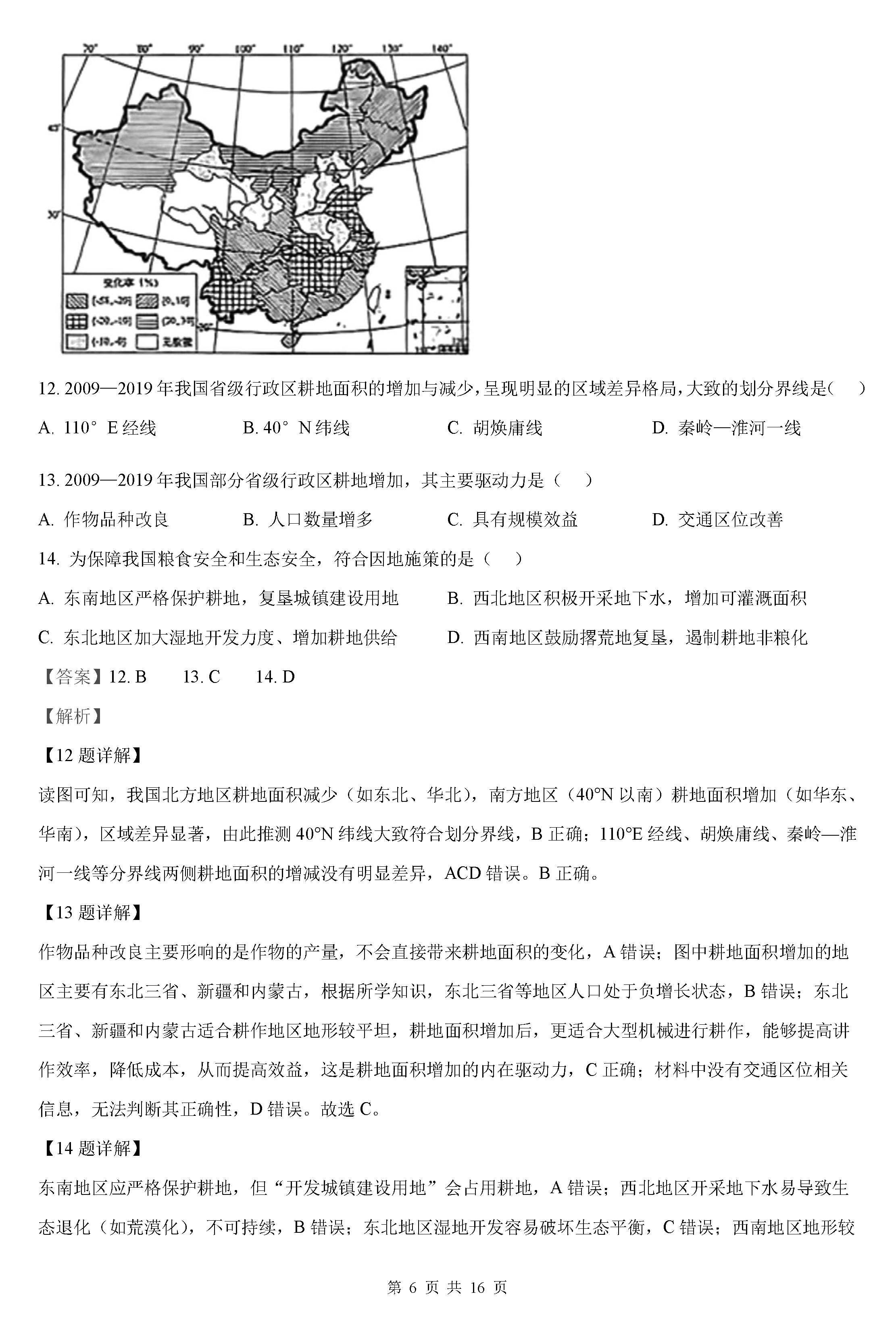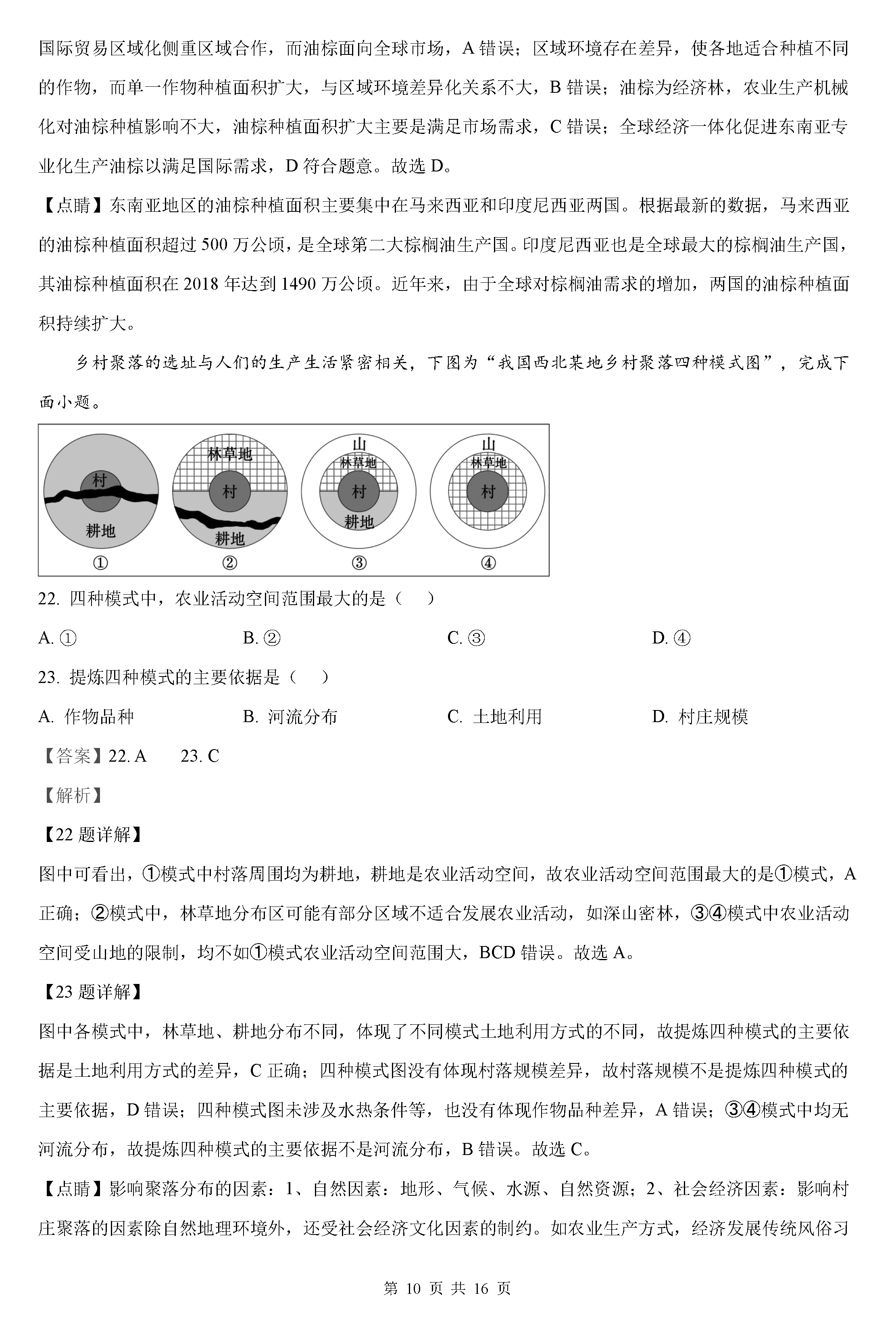 2022年湖南高考地理试卷真题及答案解析(已更新)
