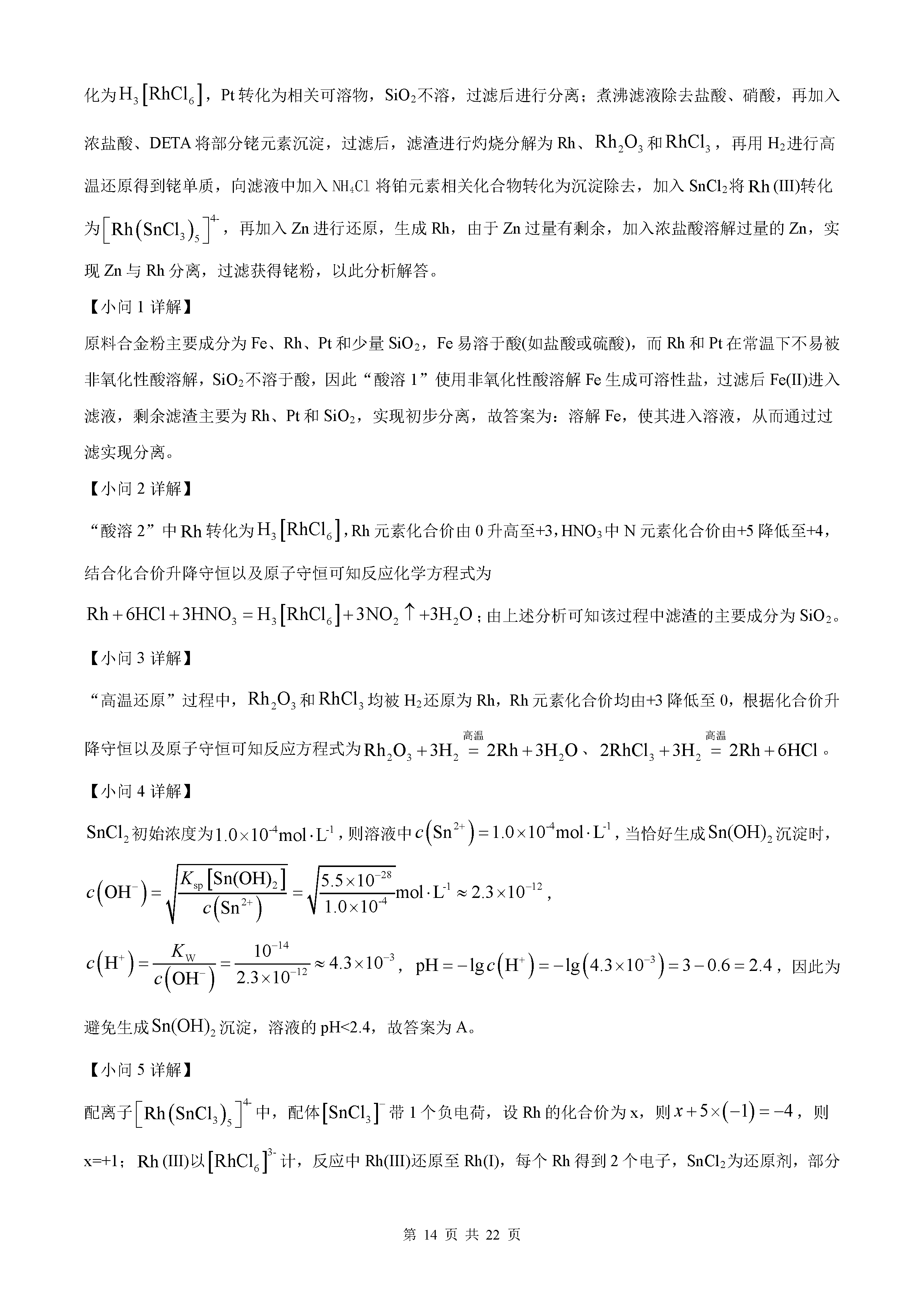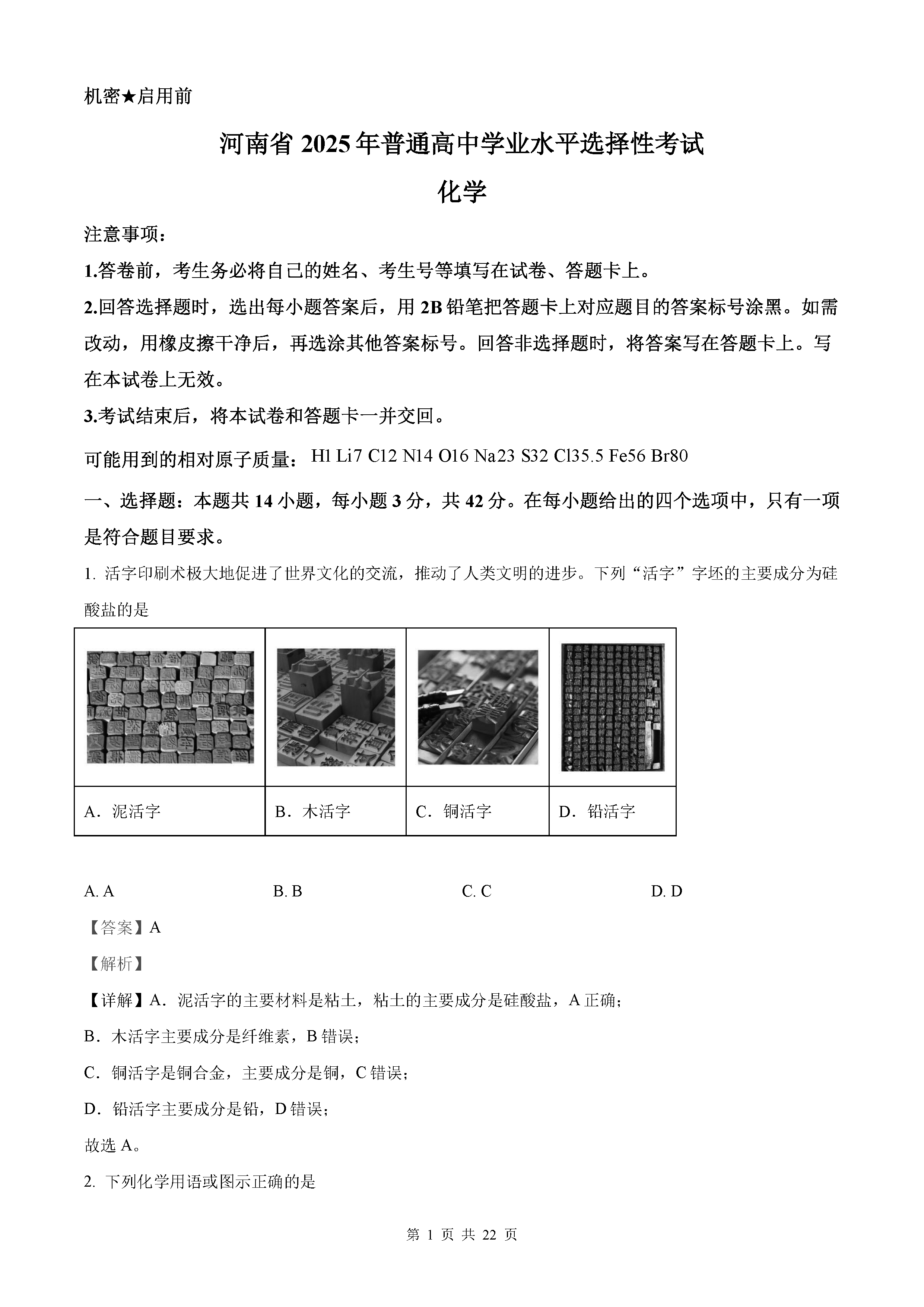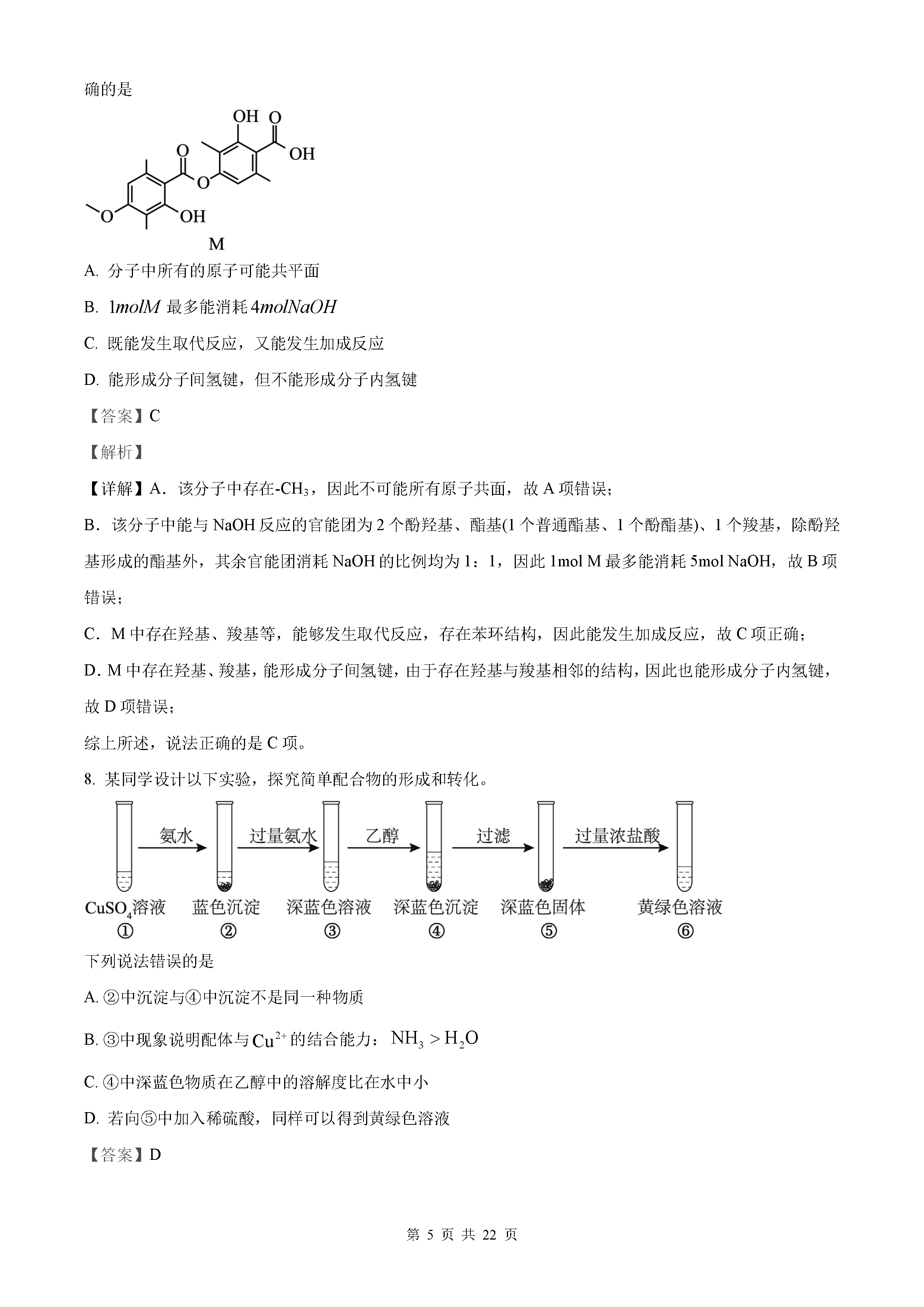 2025届河南青桐鸣5月全真模拟卷化学试题及答案