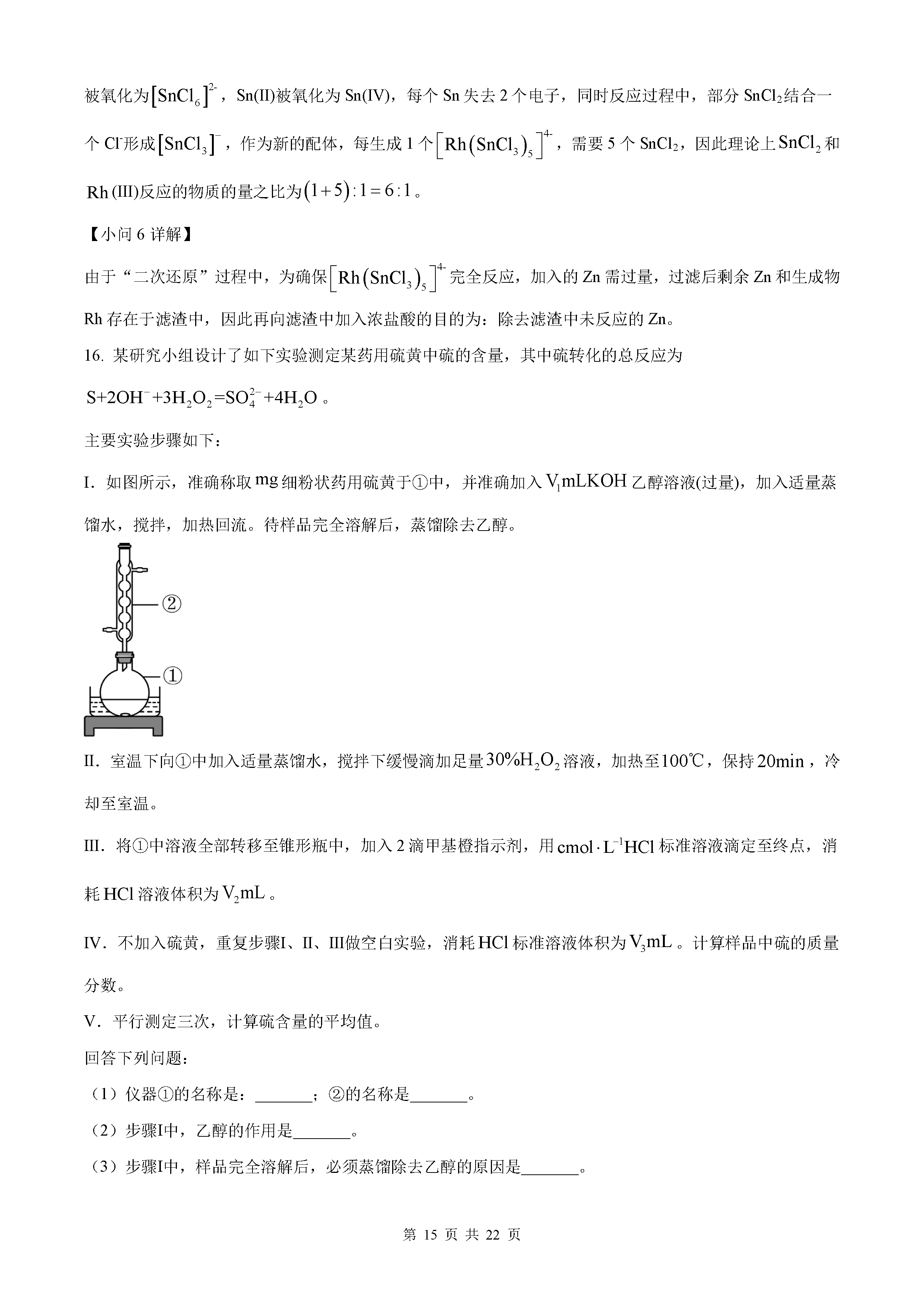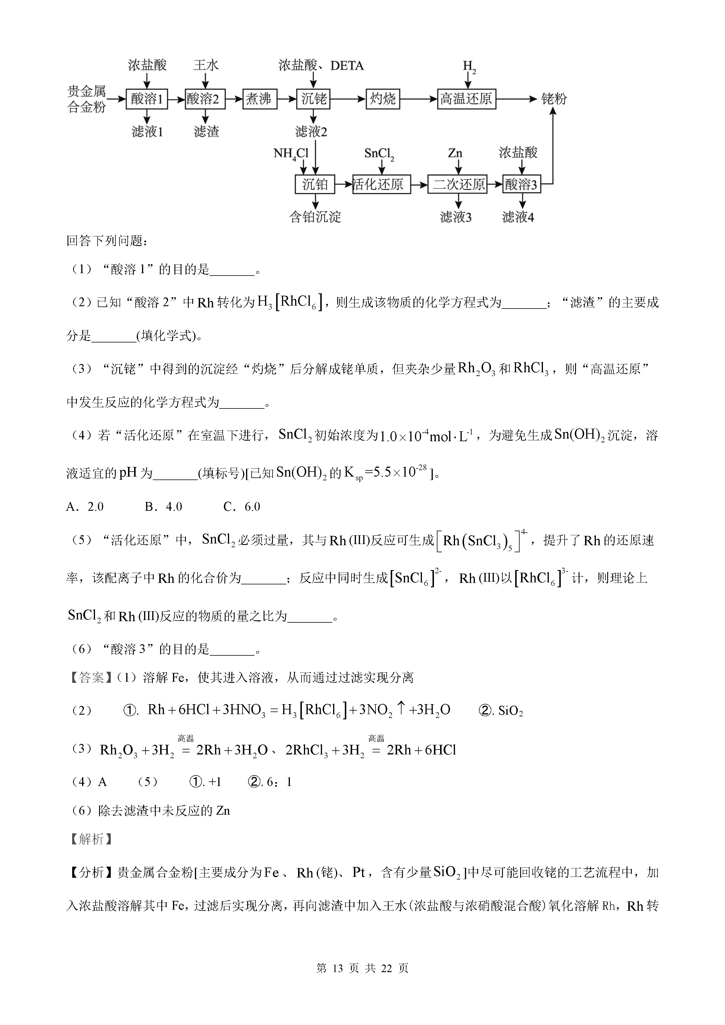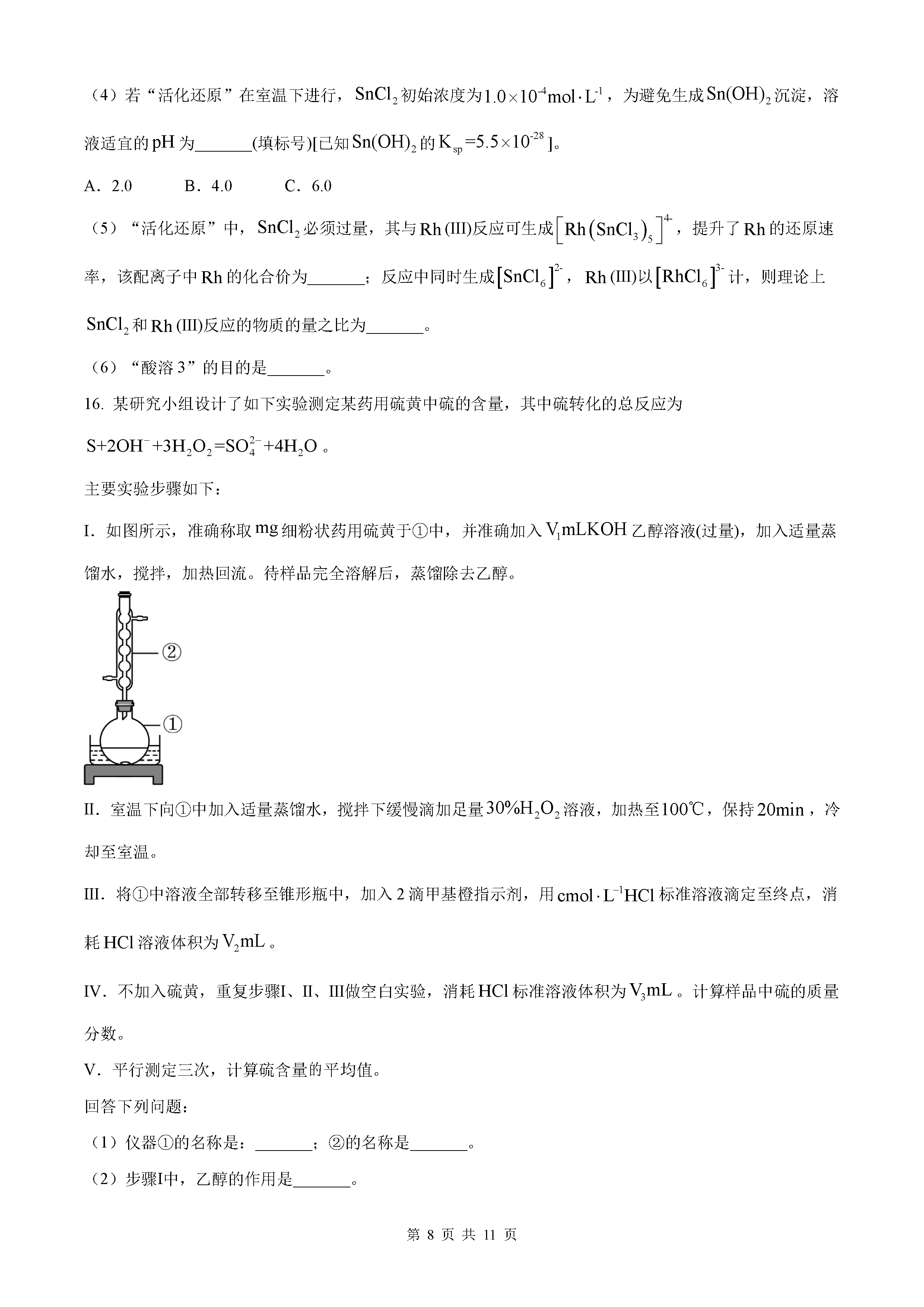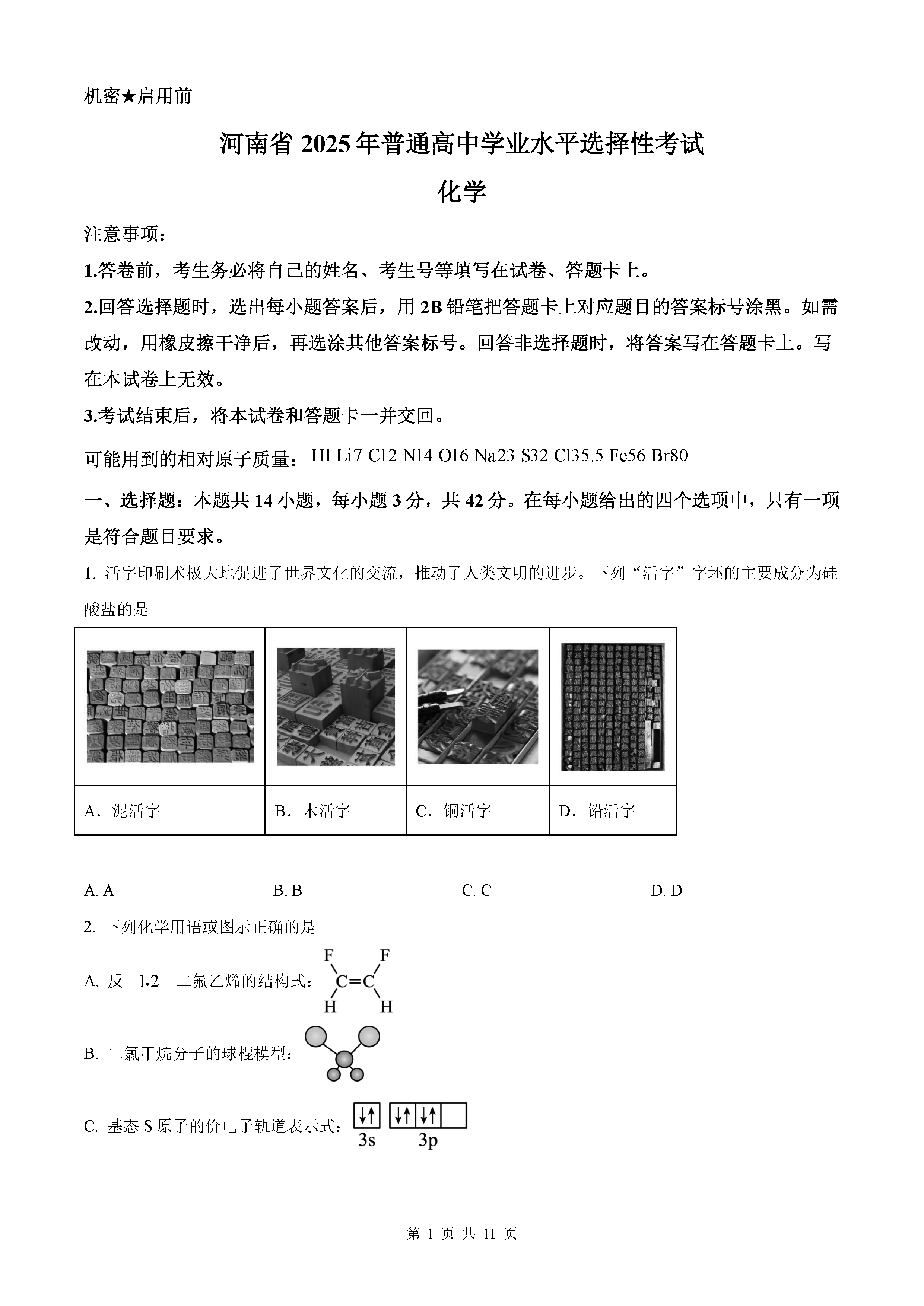 2025届河南青桐鸣5月全真模拟卷化学试题及答案