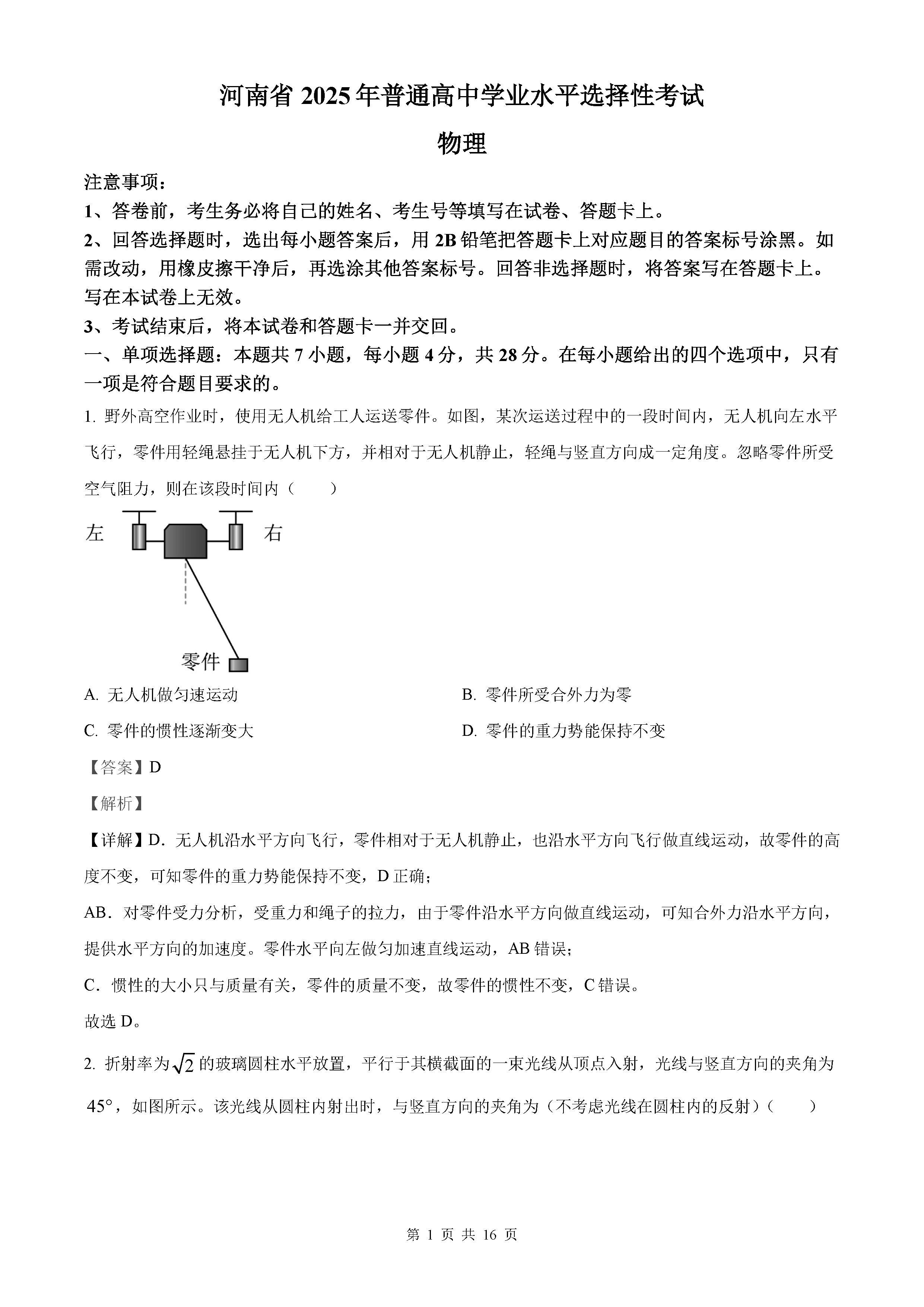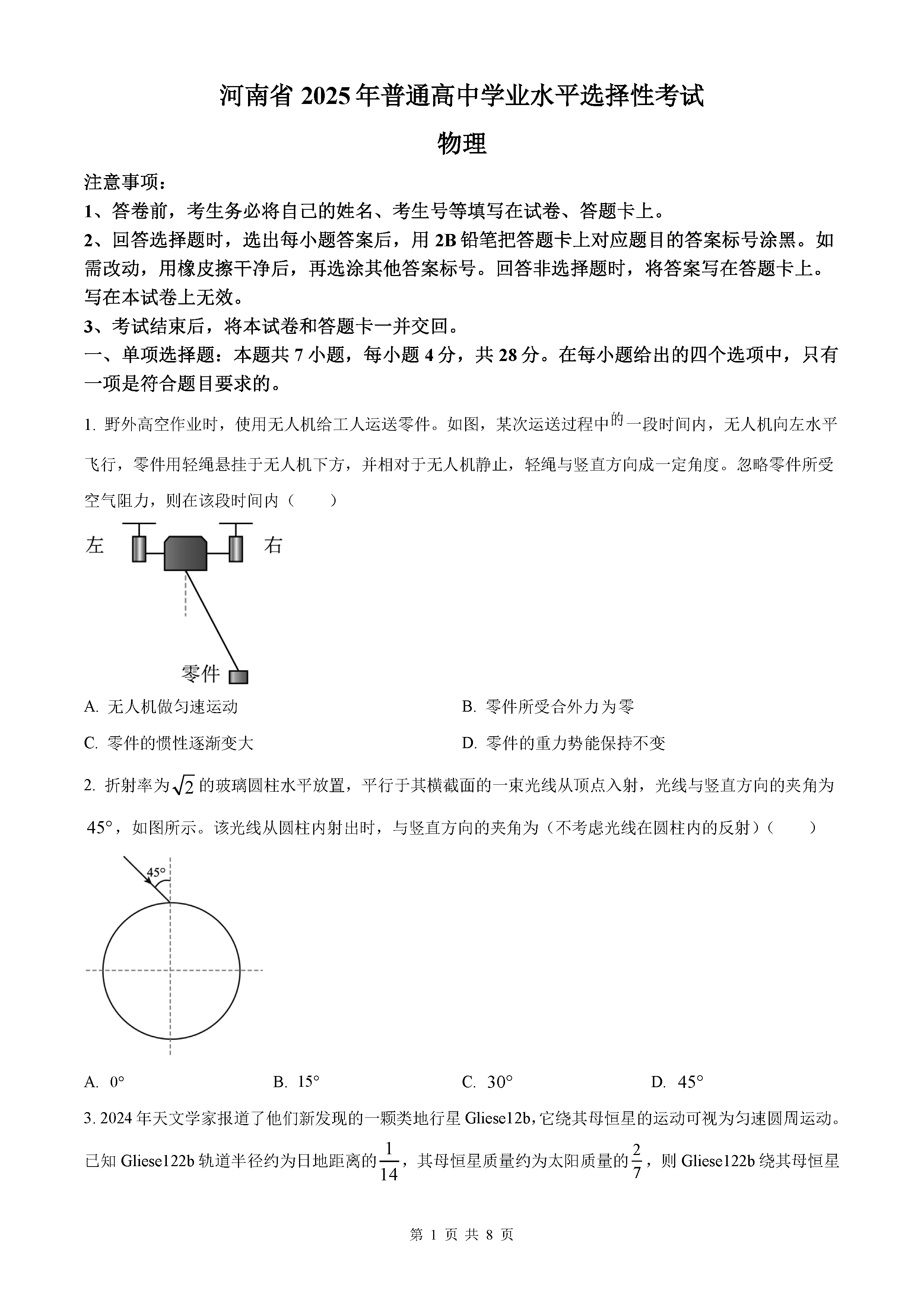 2025届河南青桐鸣5月全真模拟卷物理试题及答案